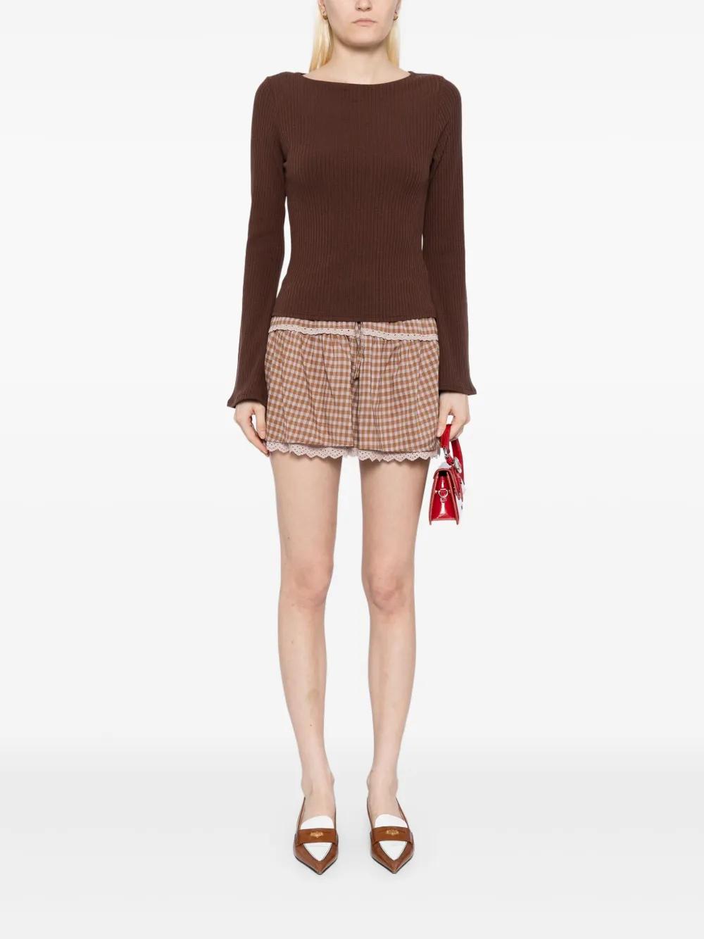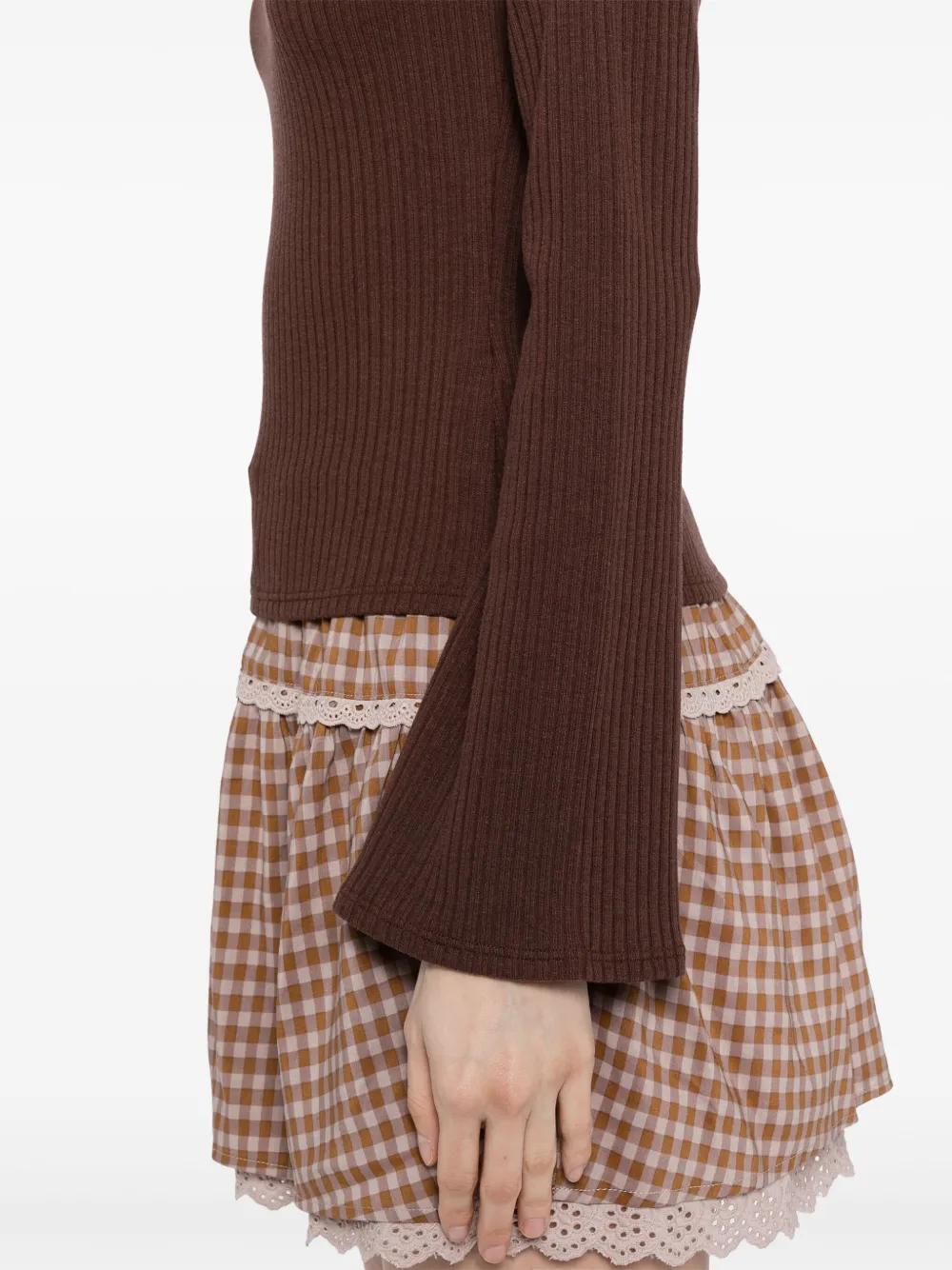beige ribbed knit zip fastening high neck distressed detailing long sleeves