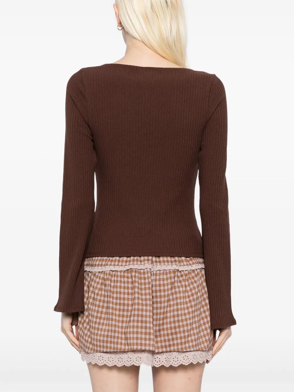 dark grey tie-neck detail button front fastening long sleeves ribbed knit