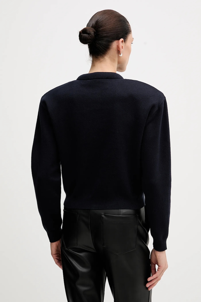 - Model z dodatkiem wełny kaszmirowej. - Zapięcie na zatrzaski. - Okrągły dekolt. - W ramionach poduszki dopinane na zatrzaski. - B Corporation to certyfikat przyznawany firmom spełniającym najwyższe standardy w zakresie zweryfikowanych działań społecznych i środowiskowych oraz przejrzystości publicznej, aby zachować równowagę między zyskiem a celem. - Długi rękaw. - Rękawy i dolna krawędź wykończone wygodnym, elastycznym ściągaczem. - Długość: 52 cm. - Długość rękawa: 51 cm. - Szerokość pod pachami: 47 cm. - Wymiary podane dla rozmiaru: S.