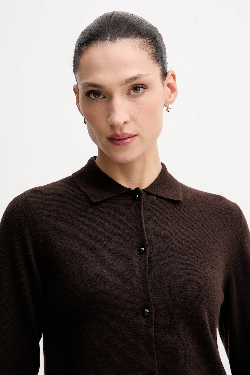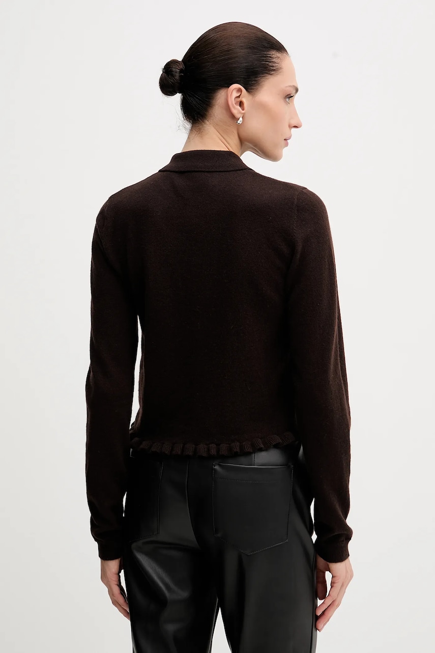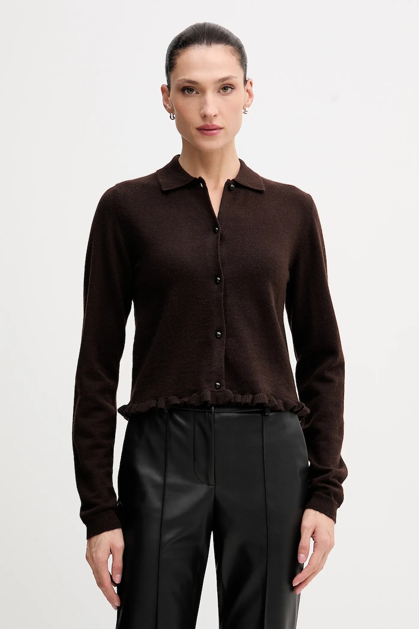 Rotate kardigan wełniany damski kolor brązowy lekki 1154642910