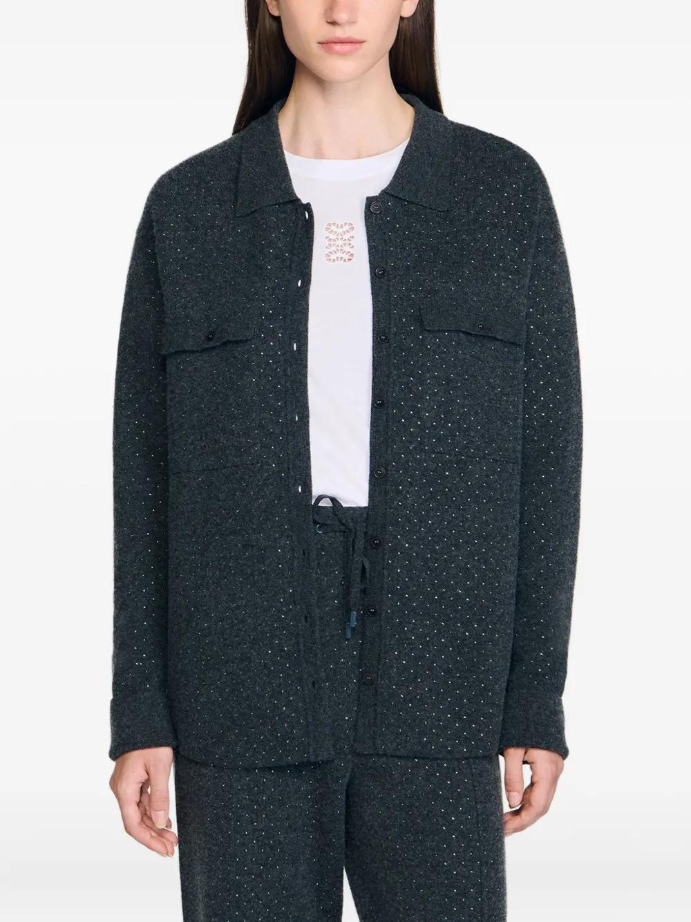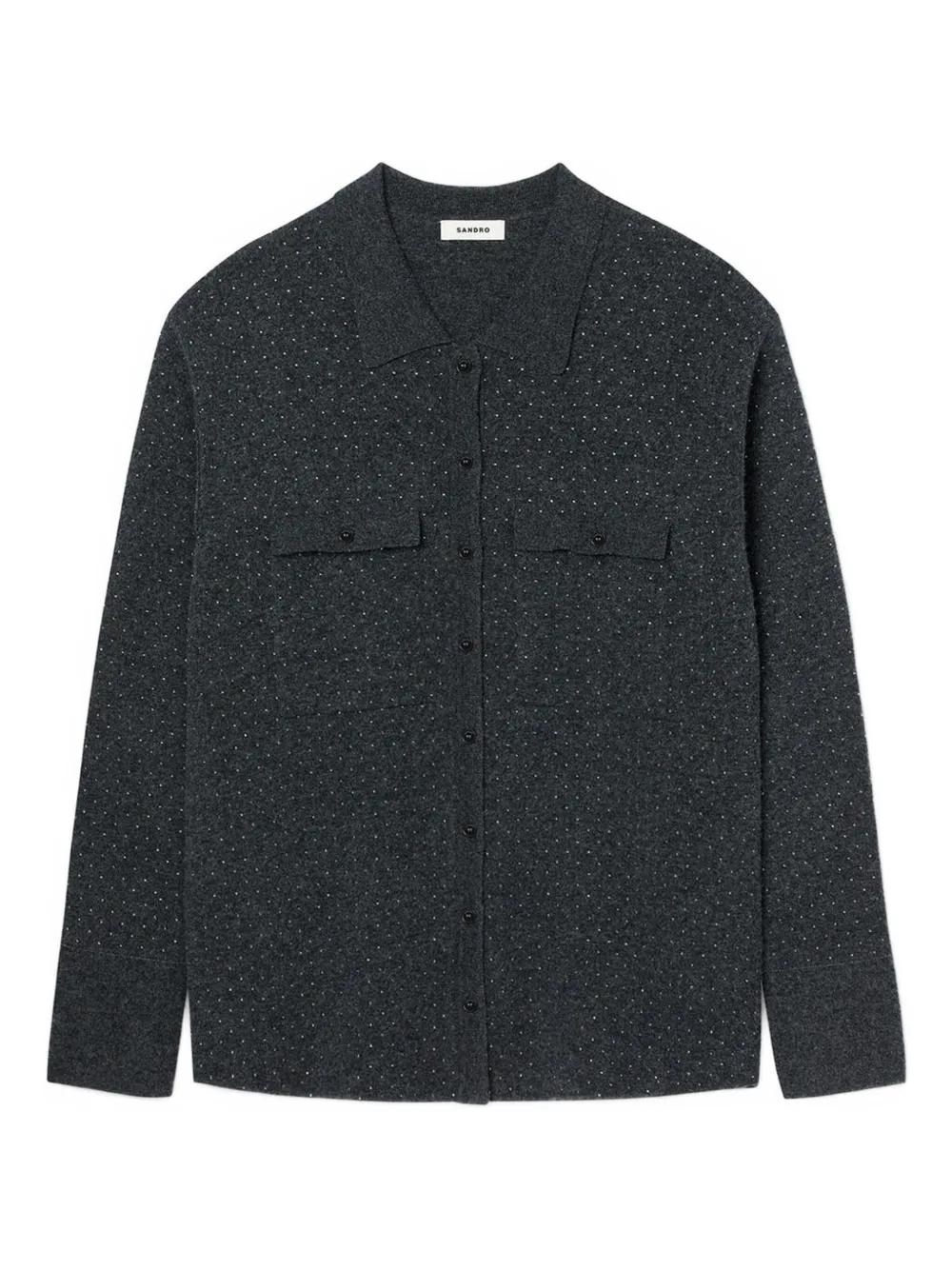 charcoal grey embellishment shirt collar long sleeves button fastening buttoned flap pockets