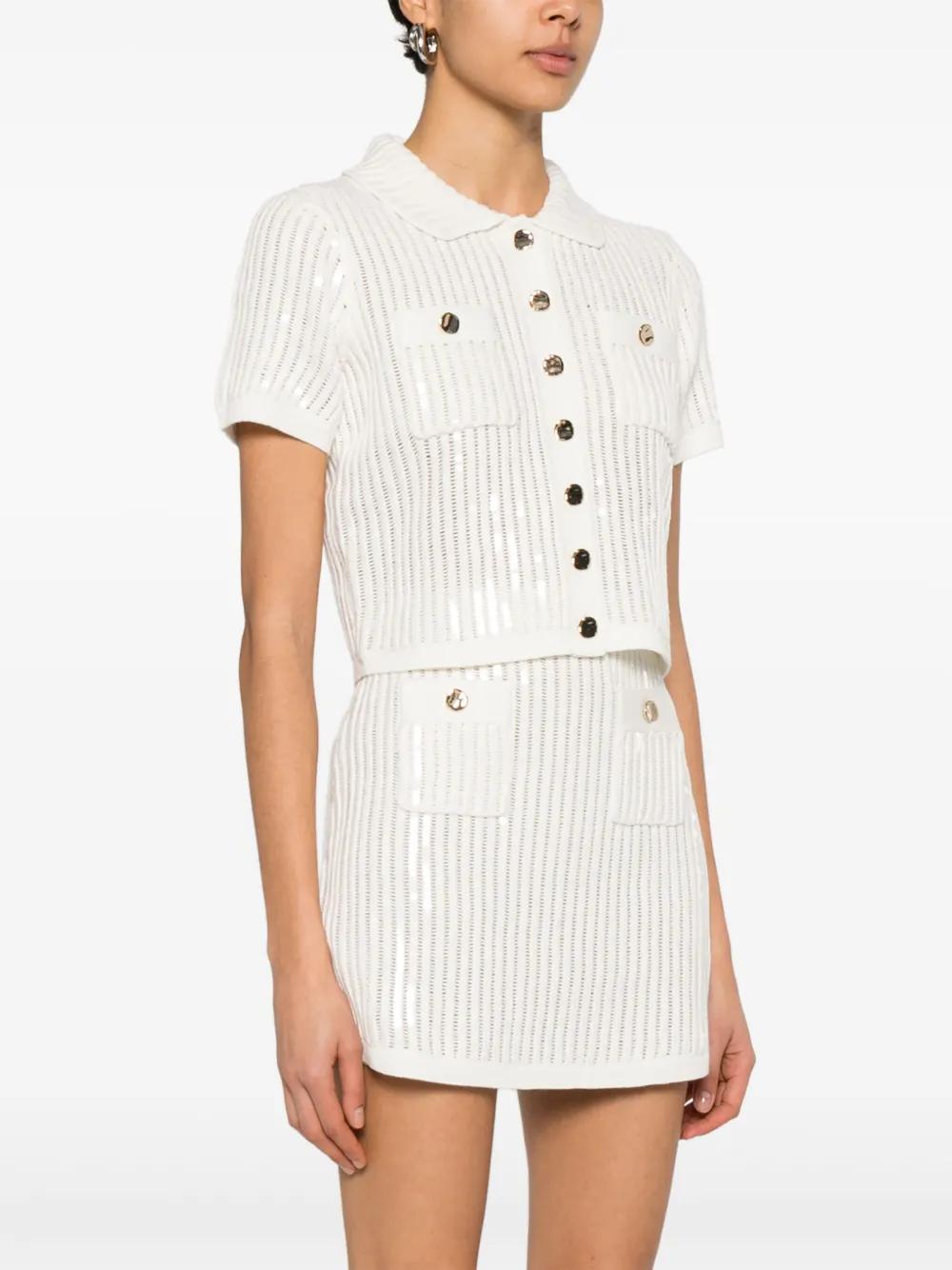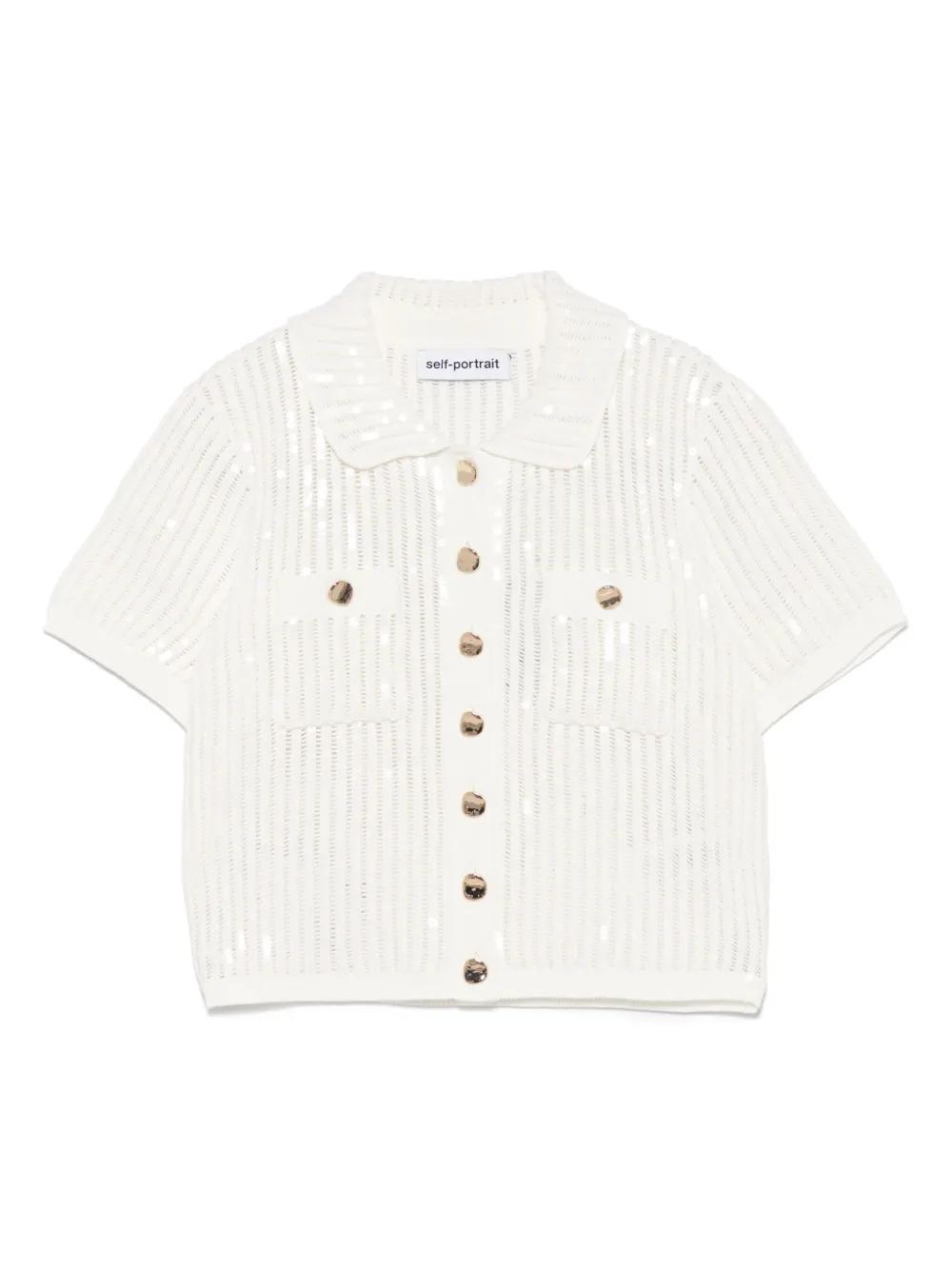 white front button fastening ribbed cuffs and hem two chest patch pockets spread collar