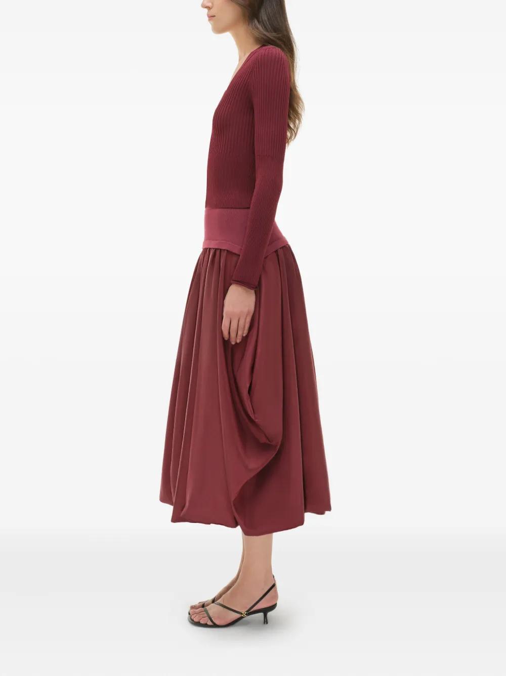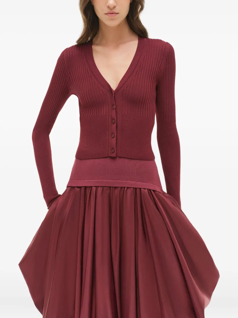 cranberry ribbed knit V-neck button fastening long sleeves