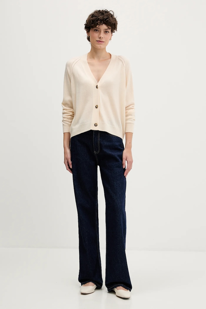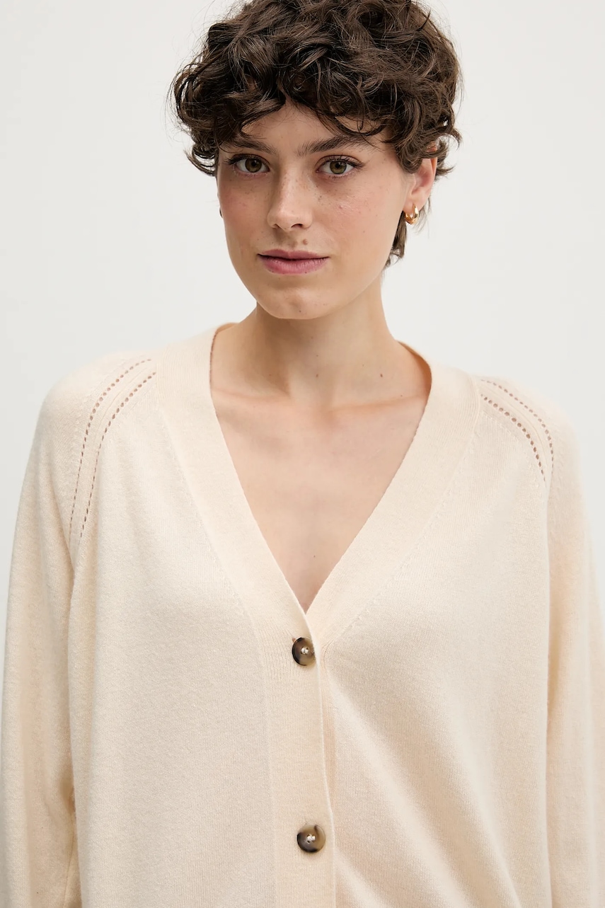 Sisley kardigan z dodatkiem wełny damski kolor beżowy lekki 102HM602Q