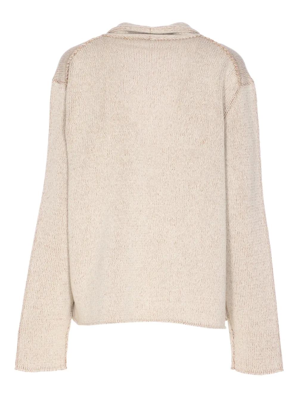beige ribbed knit zip fastening high neck distressed detailing long sleeves