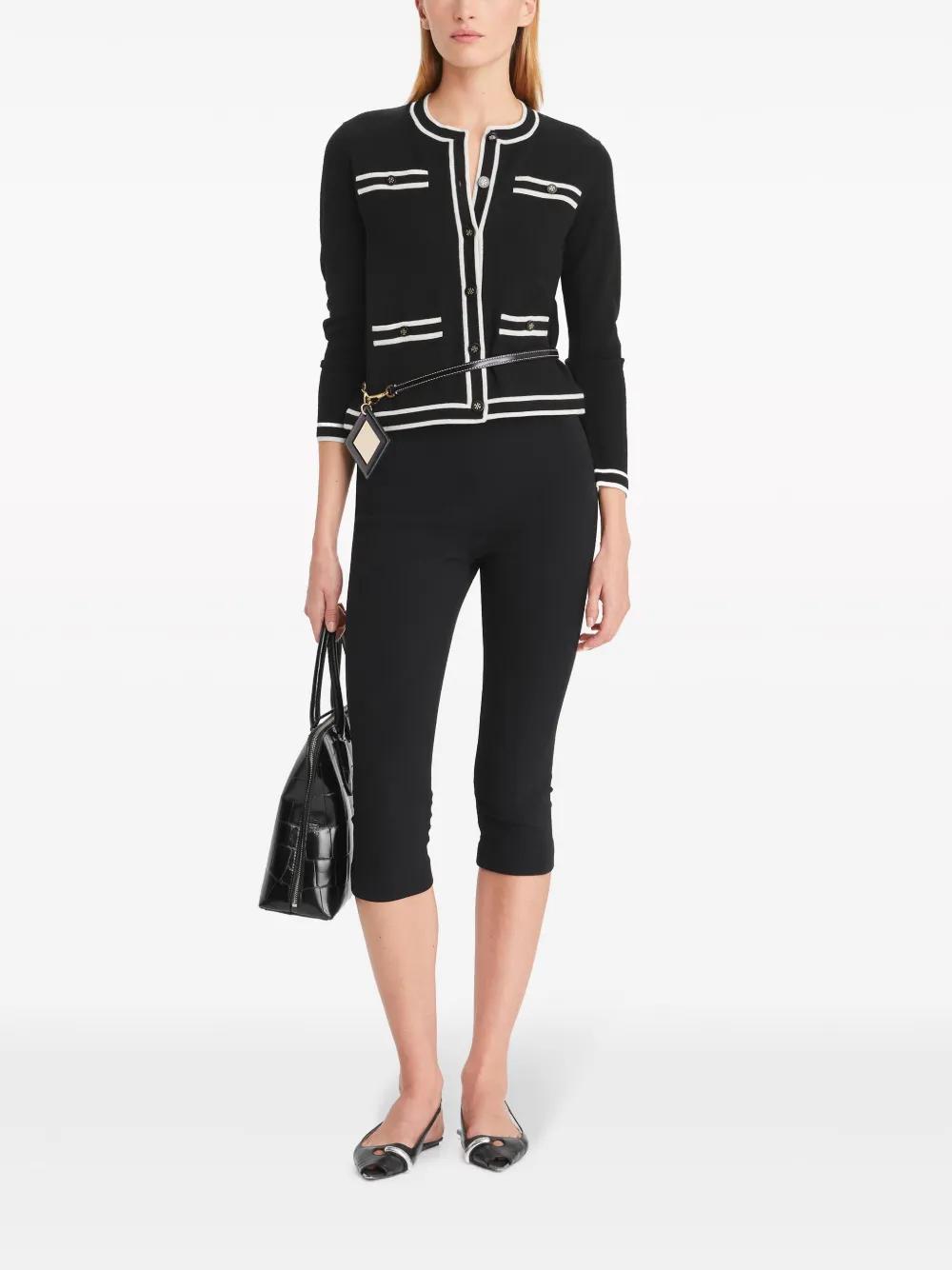 black/white merino wool silk lining logo-embossed buttons round neck front button fastening long sleeves front welt pockets straight hem