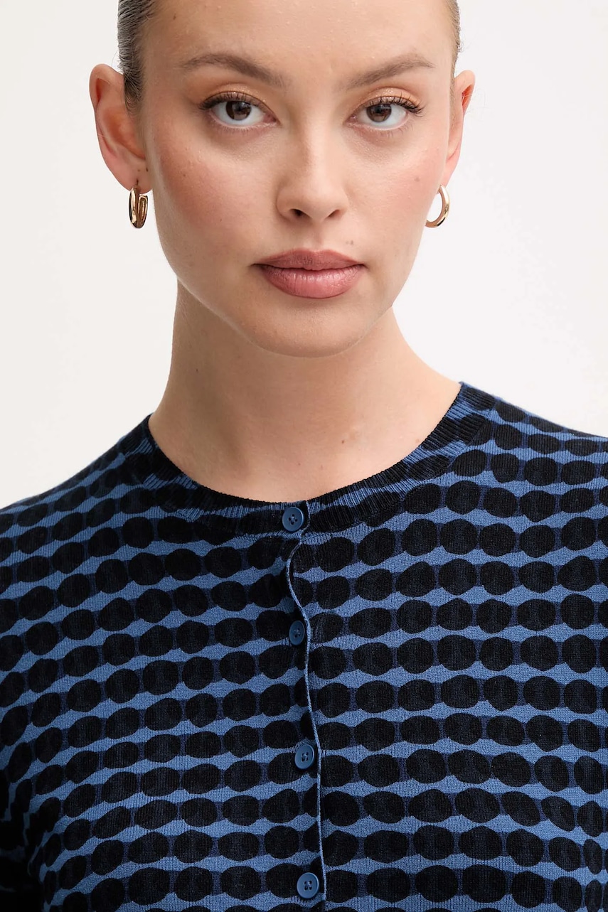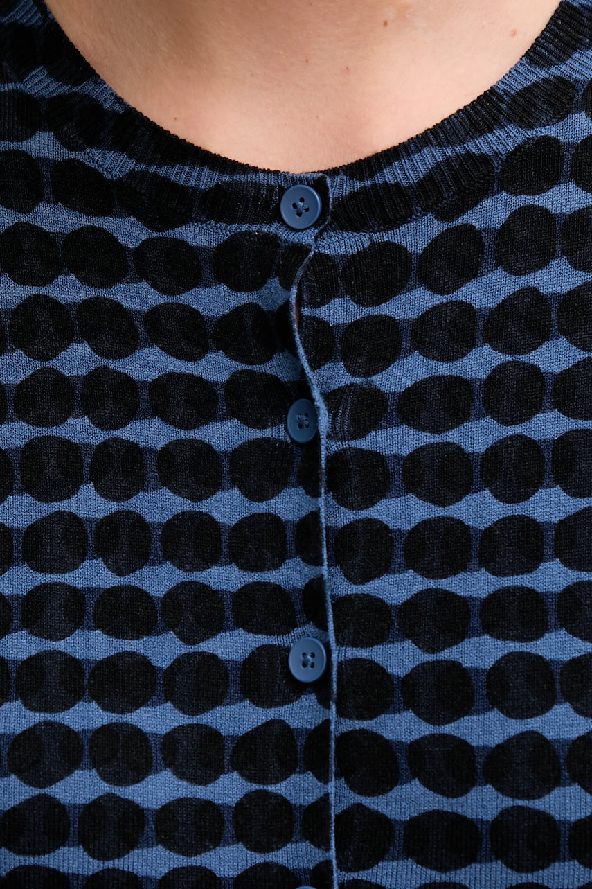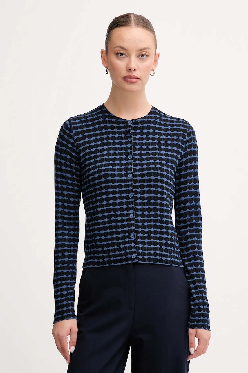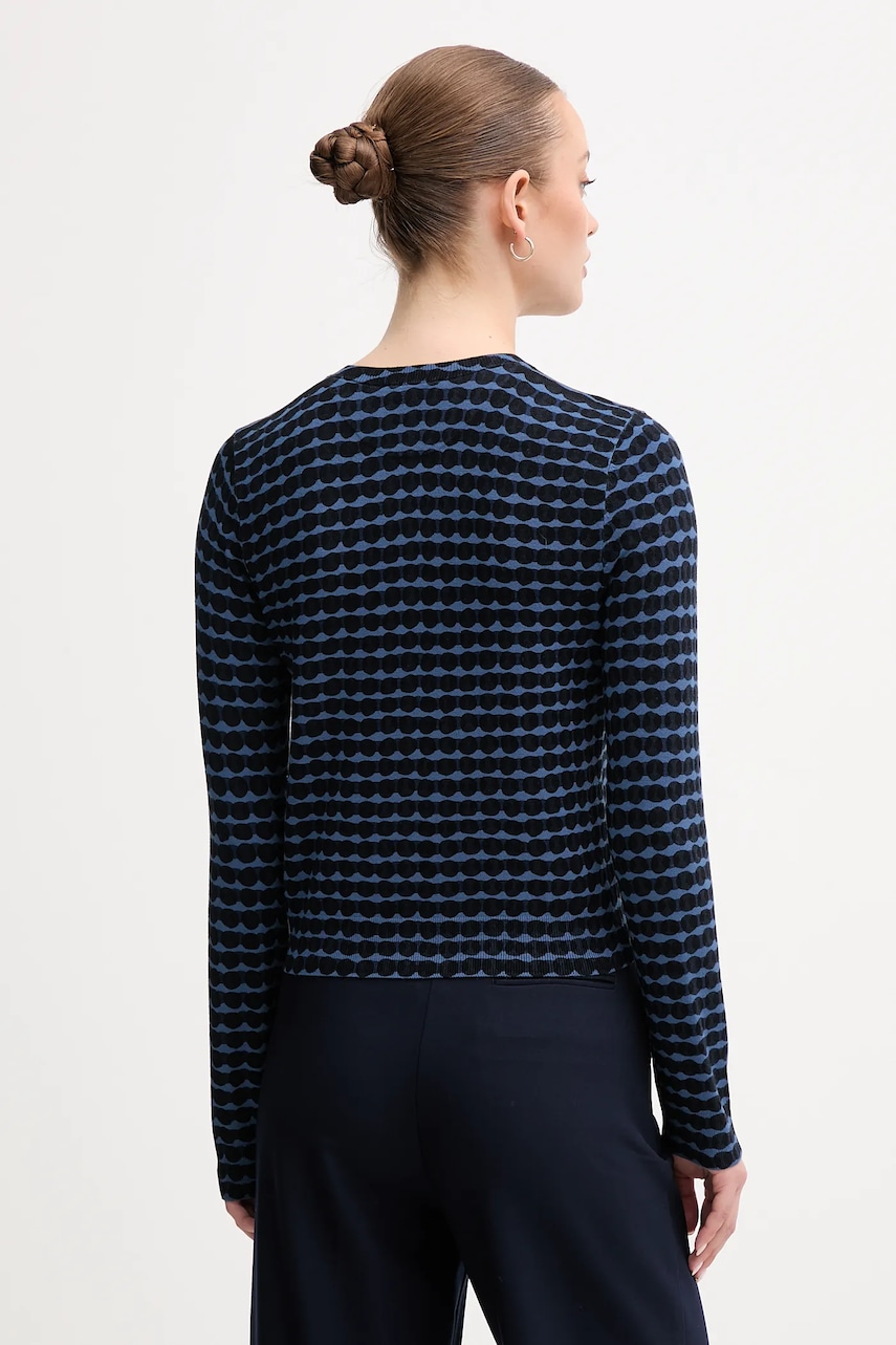 - Dopasowany, podkreślający sylwetkę fason. - Długi rękaw. - Rękawy i dolna krawędź zakończona ściągaczami chroniącymi przed niekorzystnymi warunkami atmosferycznymi. - Wygodne zapięcie na guziki ułatwia zakładanie i zdejmowanie. - Cienka, elastyczna dzianina. - Długość rękawa: 65 cm. - Długość: 52 cm. - Szerokość pod pachami: 45 cm. - Wymiary podane dla rozmiaru: S.