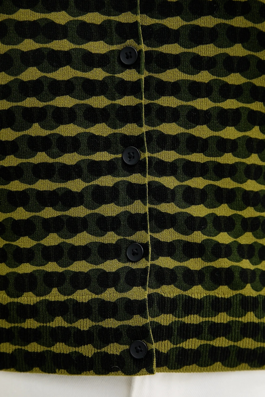 - Dopasowany, podkreślający sylwetkę fason. - Długi rękaw. - Rękawy i dolna krawędź zakończona ściągaczami chroniącymi przed niekorzystnymi warunkami atmosferycznymi. - Wygodne zapięcie na guziki ułatwia zakładanie i zdejmowanie. - Cienka, elastyczna dzianina. - Długość rękawa: 65 cm. - Długość: 52 cm. - Szerokość pod pachami: 45 cm. - Wymiary podane dla rozmiaru: S.