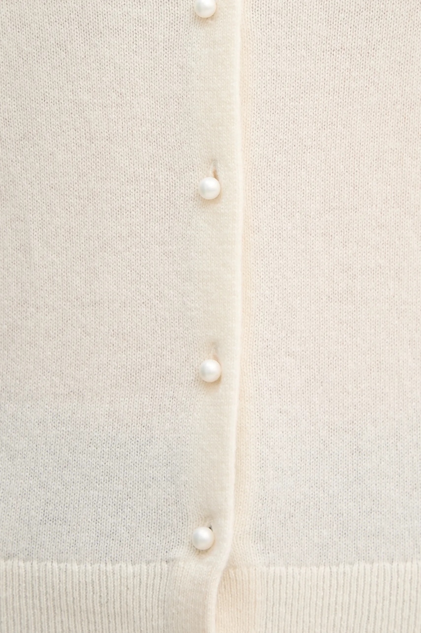 - Sweter w fasonie regular zapewnia wygodę i uniwersalny wygląd. Delikatnie dopasowuje się do sylwetki, ale nie podkreśla jej nadmiernie. Klasyczny i prosty, sprawdzi się zarówno w eleganckich, jak i casualowych stylizacjach. - Zapięcie na guziki. - Długość rękawa: 56 cm. - Długość: 56 cm. - Szerokość pod pachami: 45 cm. - Wymiary podane dla rozmiaru: S.