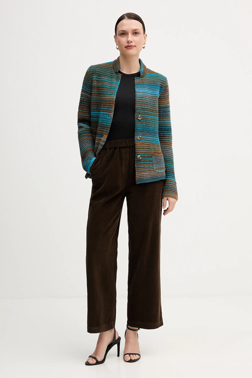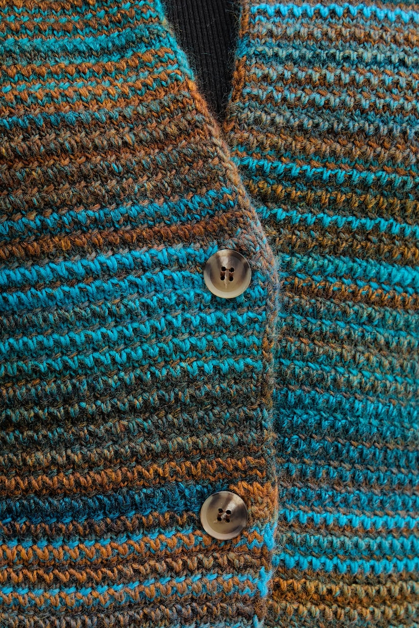- Model częściowo wykonany z włókien, wyprodukowanych przy użyciu zrównoważonych procesów produkcyjnych, zmniejszających tym samym ich wpływ na środowisko. - Zapięcie na guziki. - Melanżowa dzianina. - Dwie wsuwane kieszenie boczne. - Długość rękawa: 60 cm. - Dzianina średniej grubości. - Długość: 63 cm. - Szerokość pod pachami: 50 cm. - Wymiary podane dla rozmiaru: S.