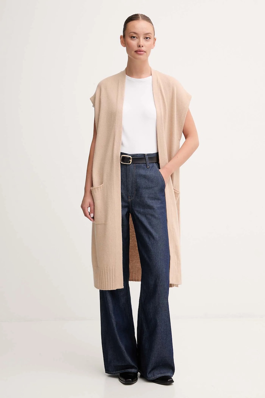 United Colors of Benetton kardigan z dodatkiem wełny damski kolor beżowy 122HD6051