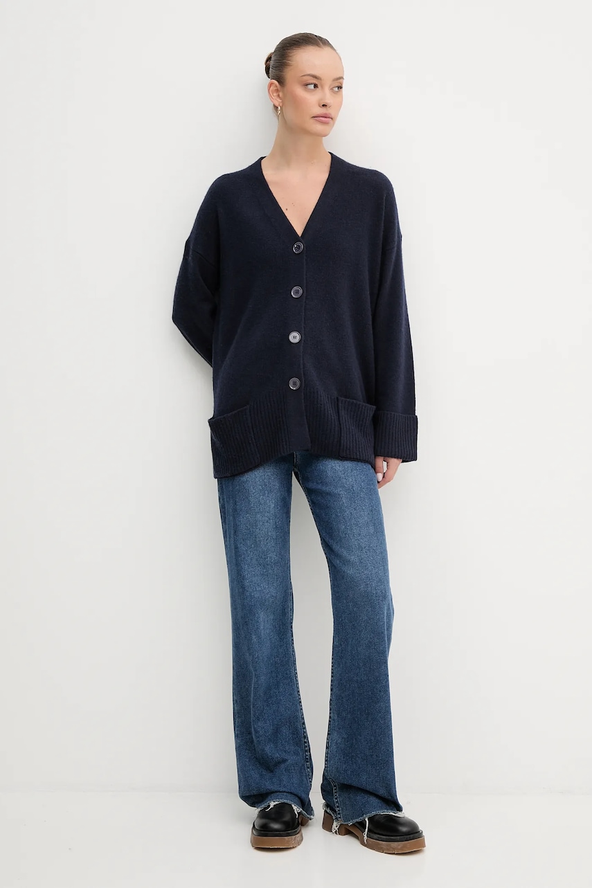 United Colors of Benetton kardigan z dodatkiem wełny damski kolor granatowy 126WD604Z