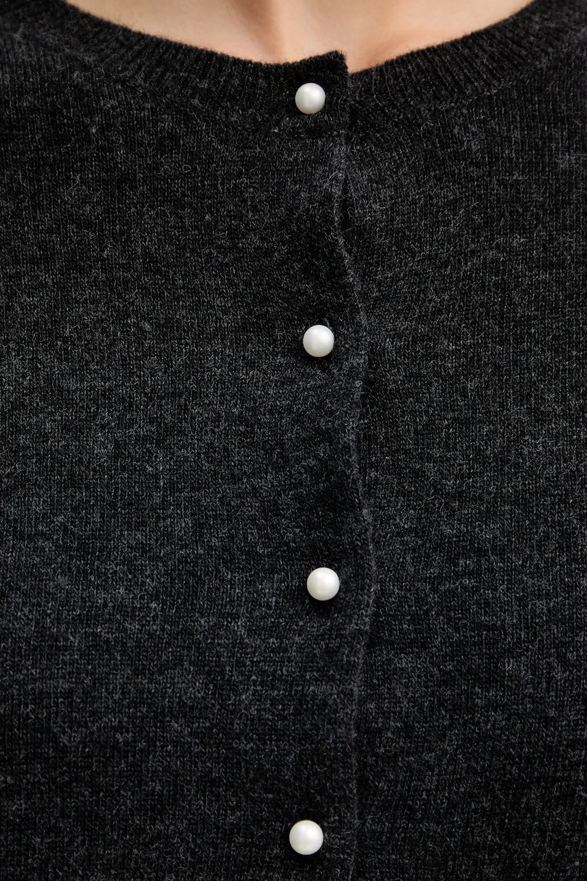 - Cienka, elastyczna dzianina. - Zapięcie na ozdobne guziki. - Obniżona linia ramion. - Długość: 52 cm. - Długość rękawa(mierzona od kołnierza): 67 cm. - Szerokość pod pachami: 50 cm. - Wymiary podane dla rozmiaru: S.