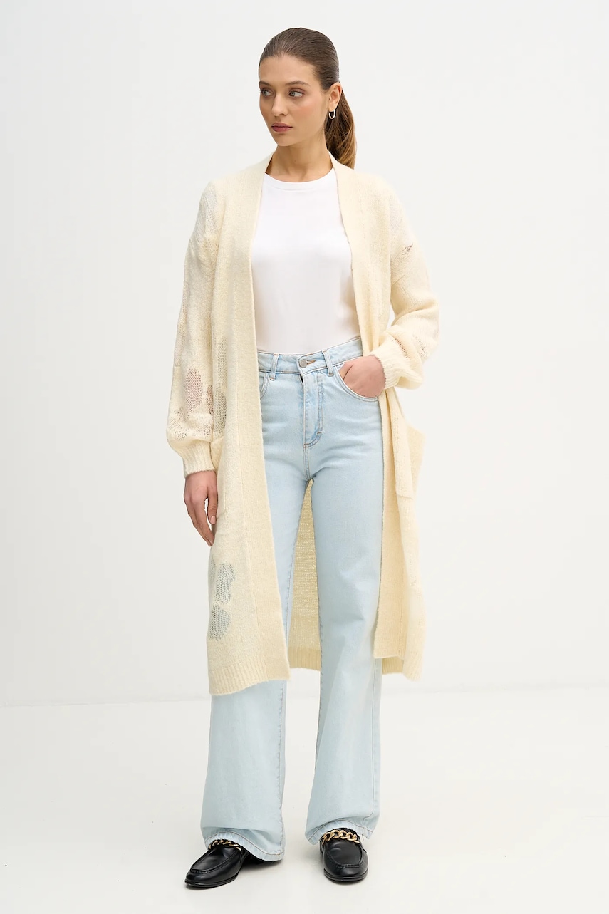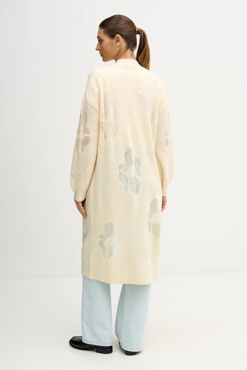 - Kardigan w fasonie regular zapewnia wygodę i uniwersalny wygląd. Delikatnie dopasowuje się do sylwetki, ale nie podkreśla jej nadmiernie. Klasyczny i prosty, sprawdzi się zarówno w eleganckich, jak i casualowych stylizacjach. - Długi rękaw. - Z przodu dwie wsuwane kieszonki. - Dzianina średniej grubości. - Długość rękawa: 74 cm. - Długość: 109 cm. - Wymiary podane dla rozmiaru: S.