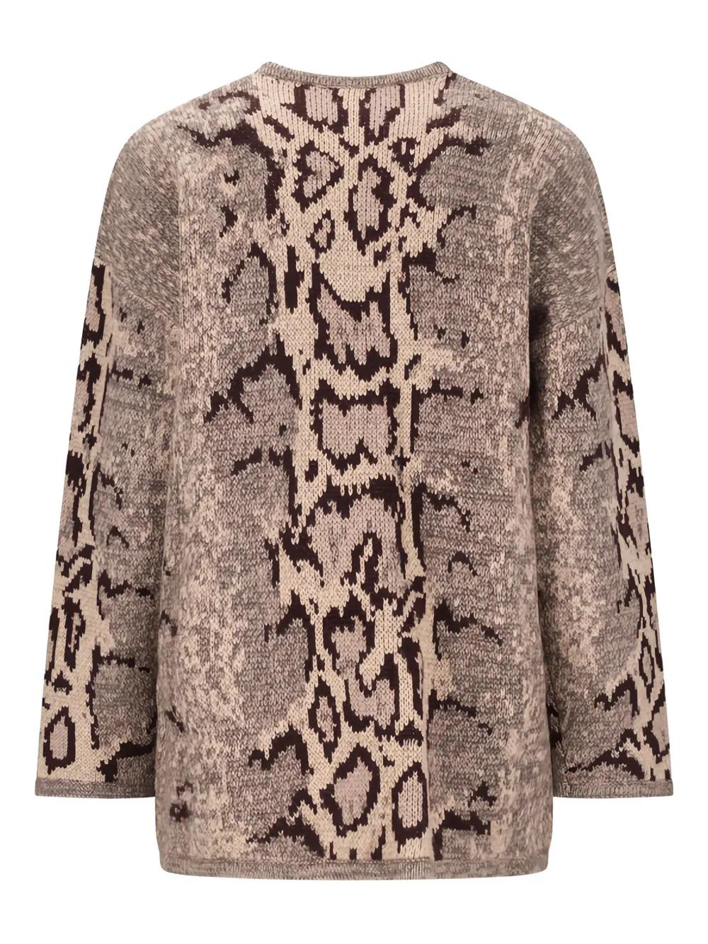 grey and beige animal print round neck front button fastening two front patch pockets ribbed hem