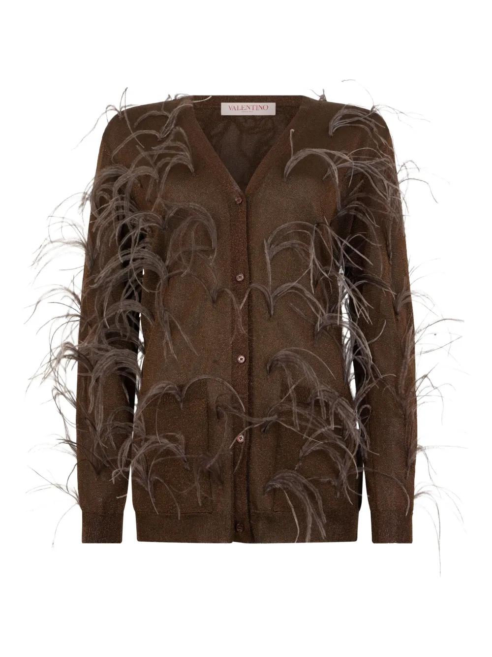 Valentino Garavani feather-embellished cardigan - Brown