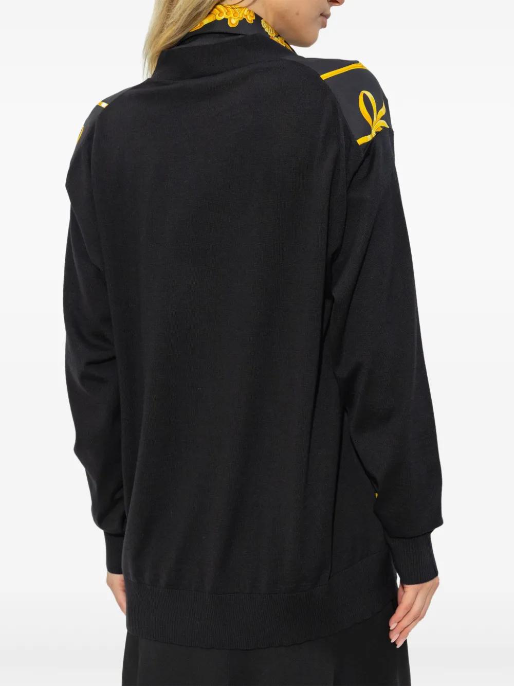 black front button fastening long sleeves ribbed cuffs and hem signature Barocco print