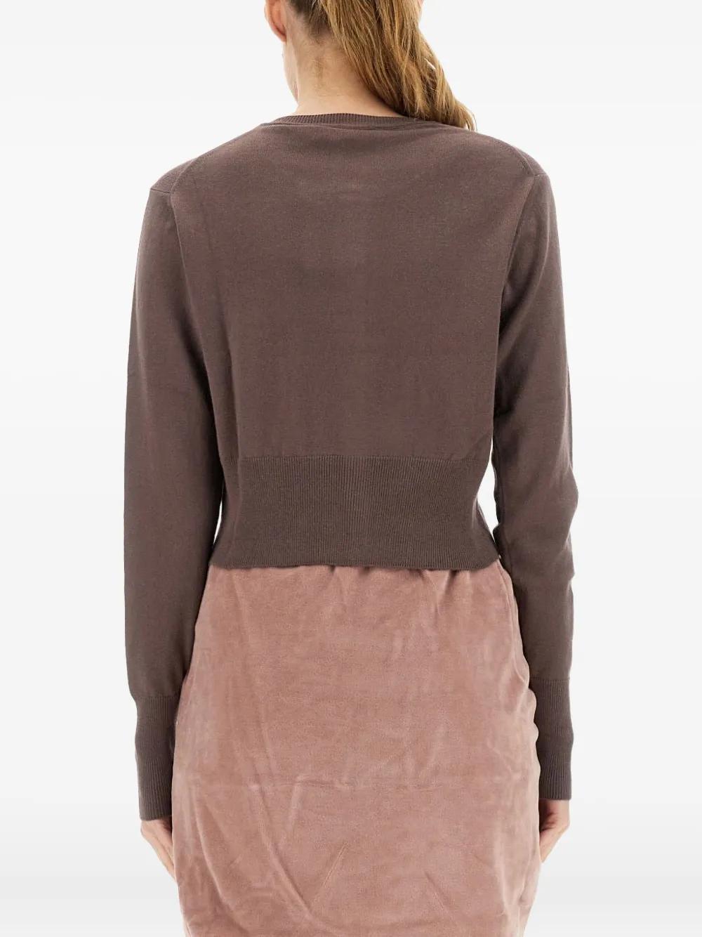 brown button fastening orb logo ribbed hem long sleeves round neck