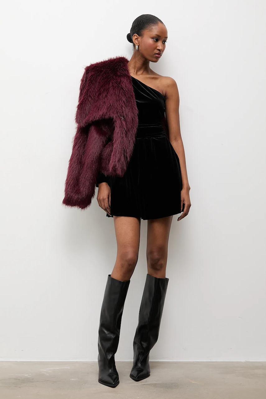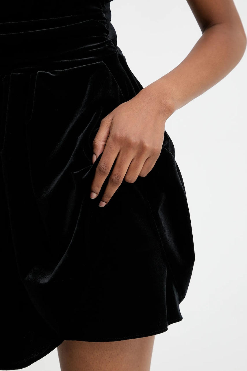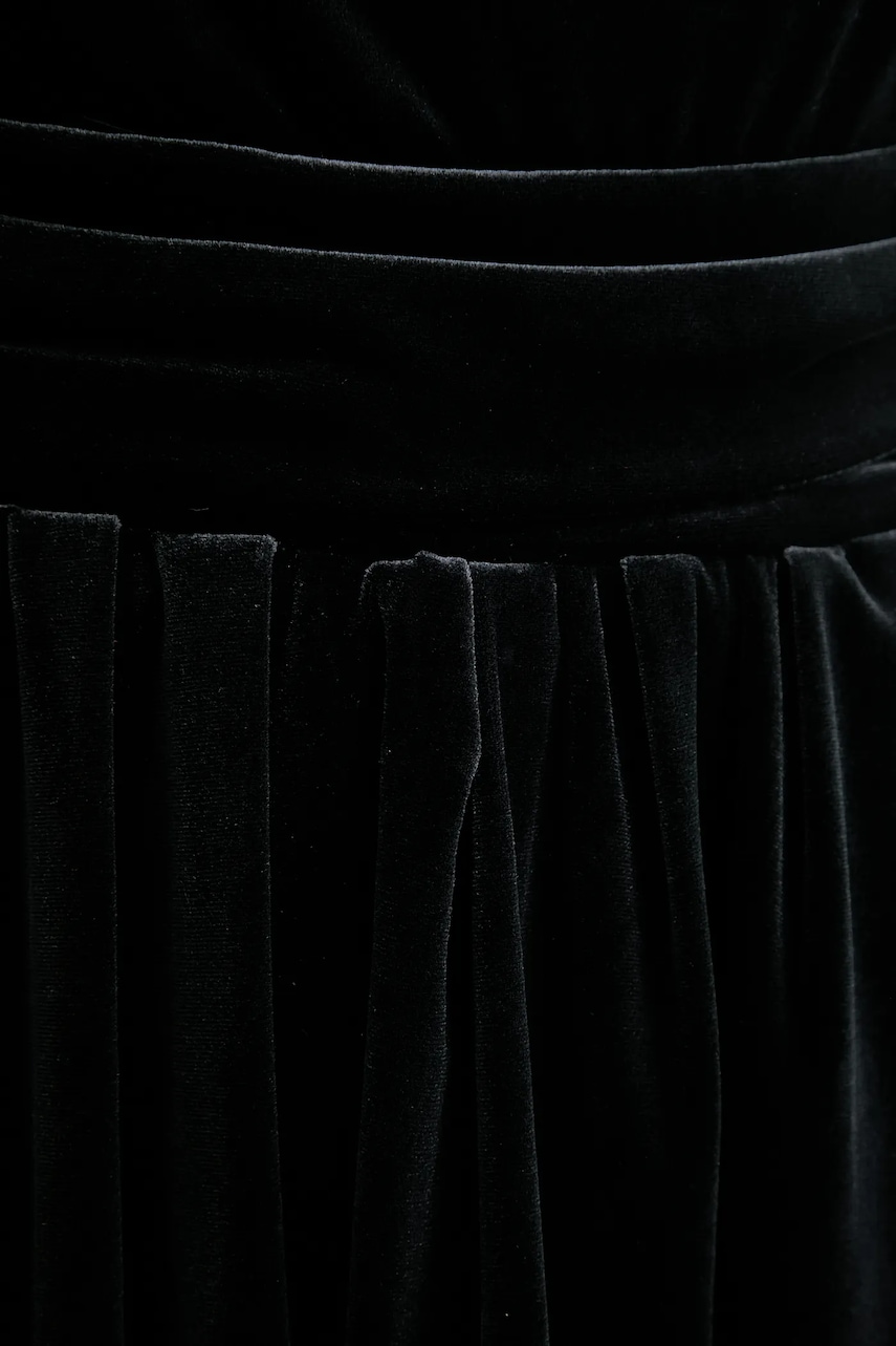 Answear.LAB kombinezon welurowy kolor czarny z dekoltem okrągłym