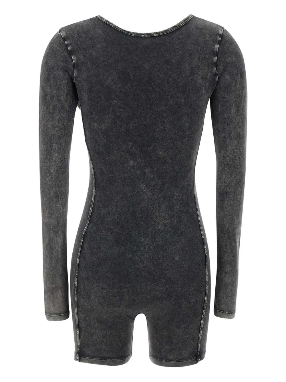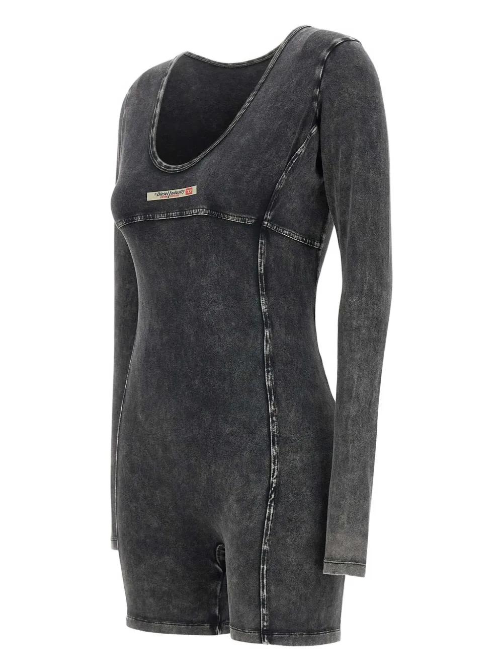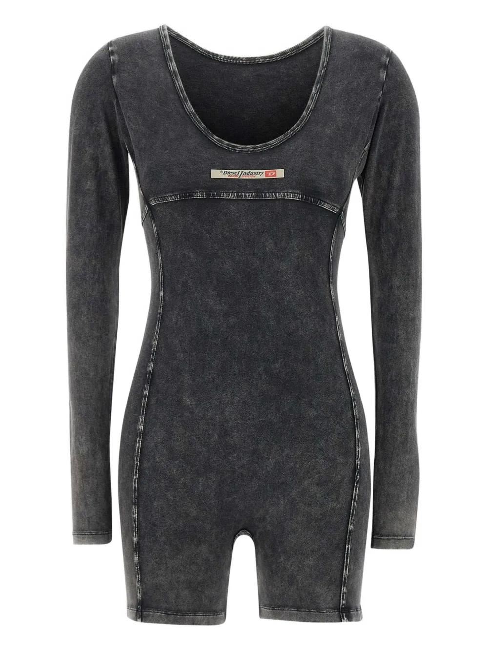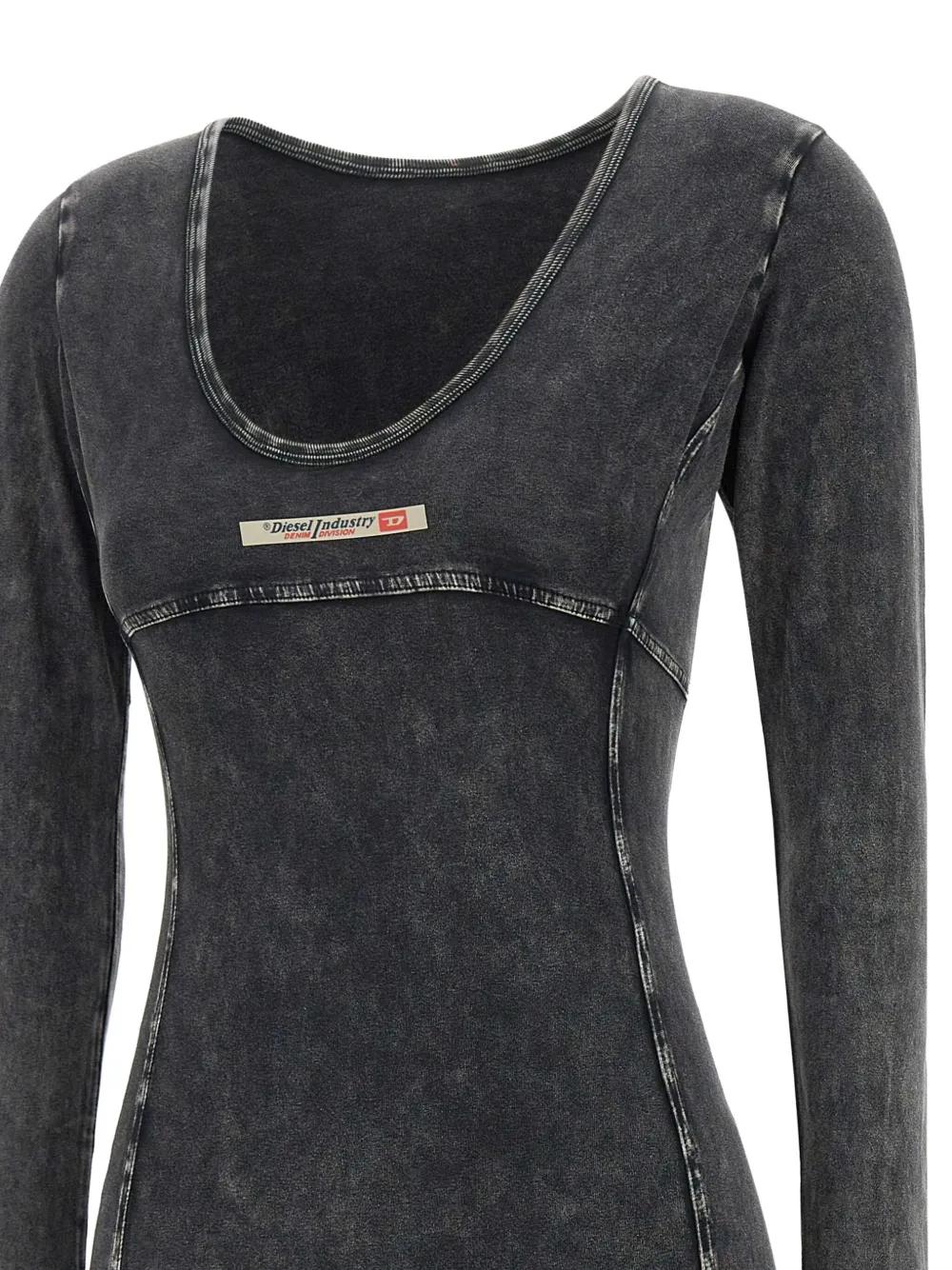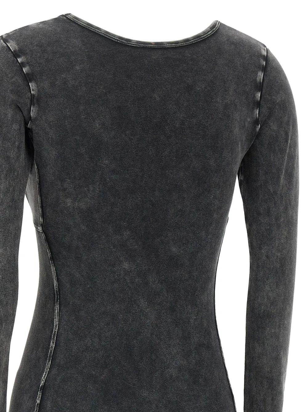 charcoal gray textured finish side seam detailing fitted silhouette crew neck