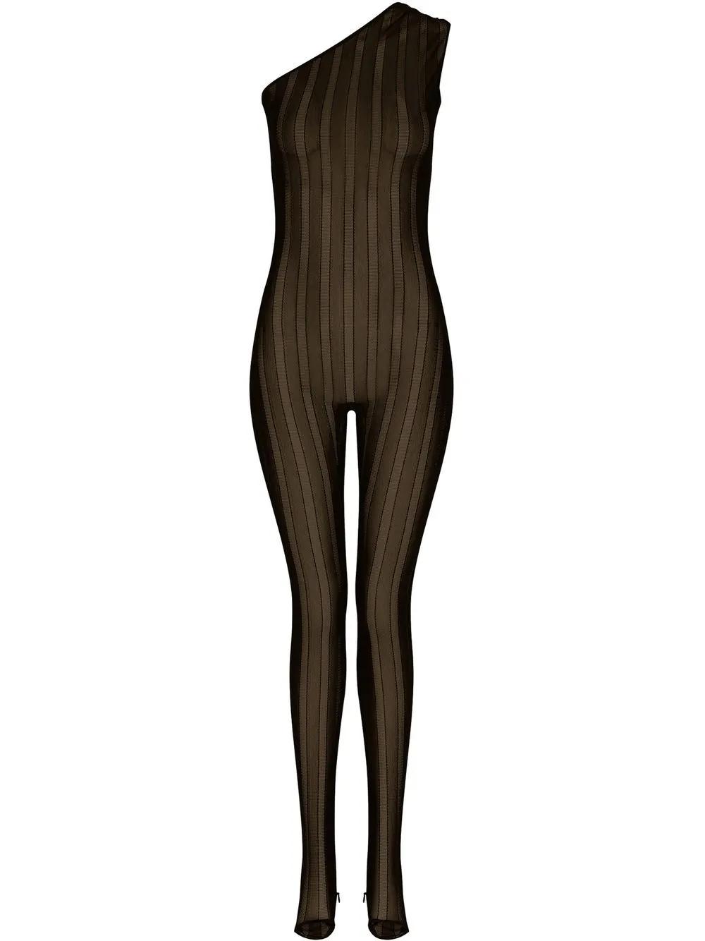 black silk blend sheer panelling one-shoulder sleeveless covers foot