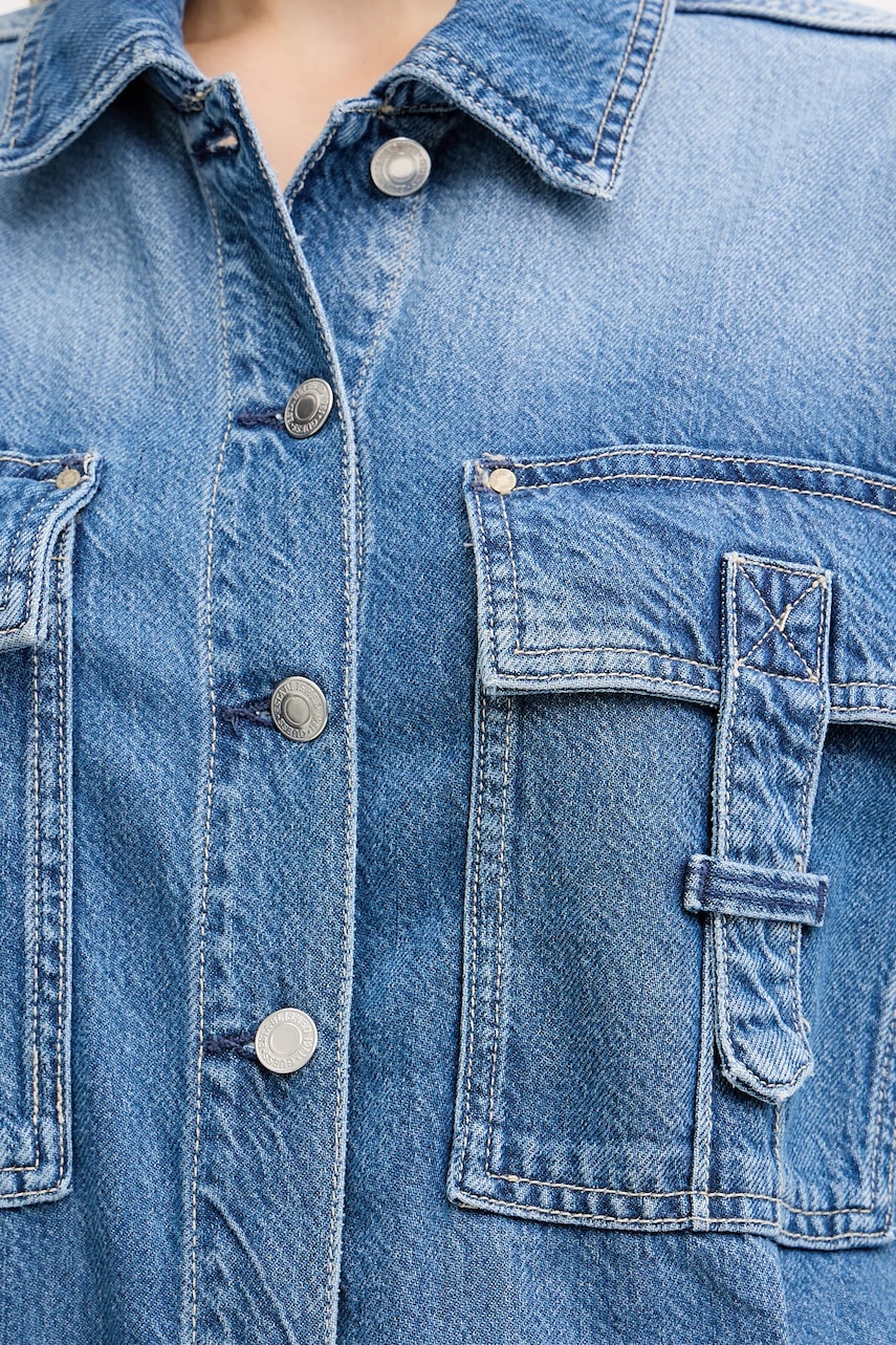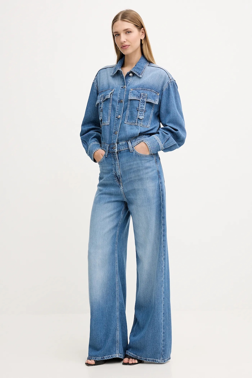 Guess kombinezon jeansowy KINSLEY kolor niebieski z kołnierzykiemm W5YD58 D5B94