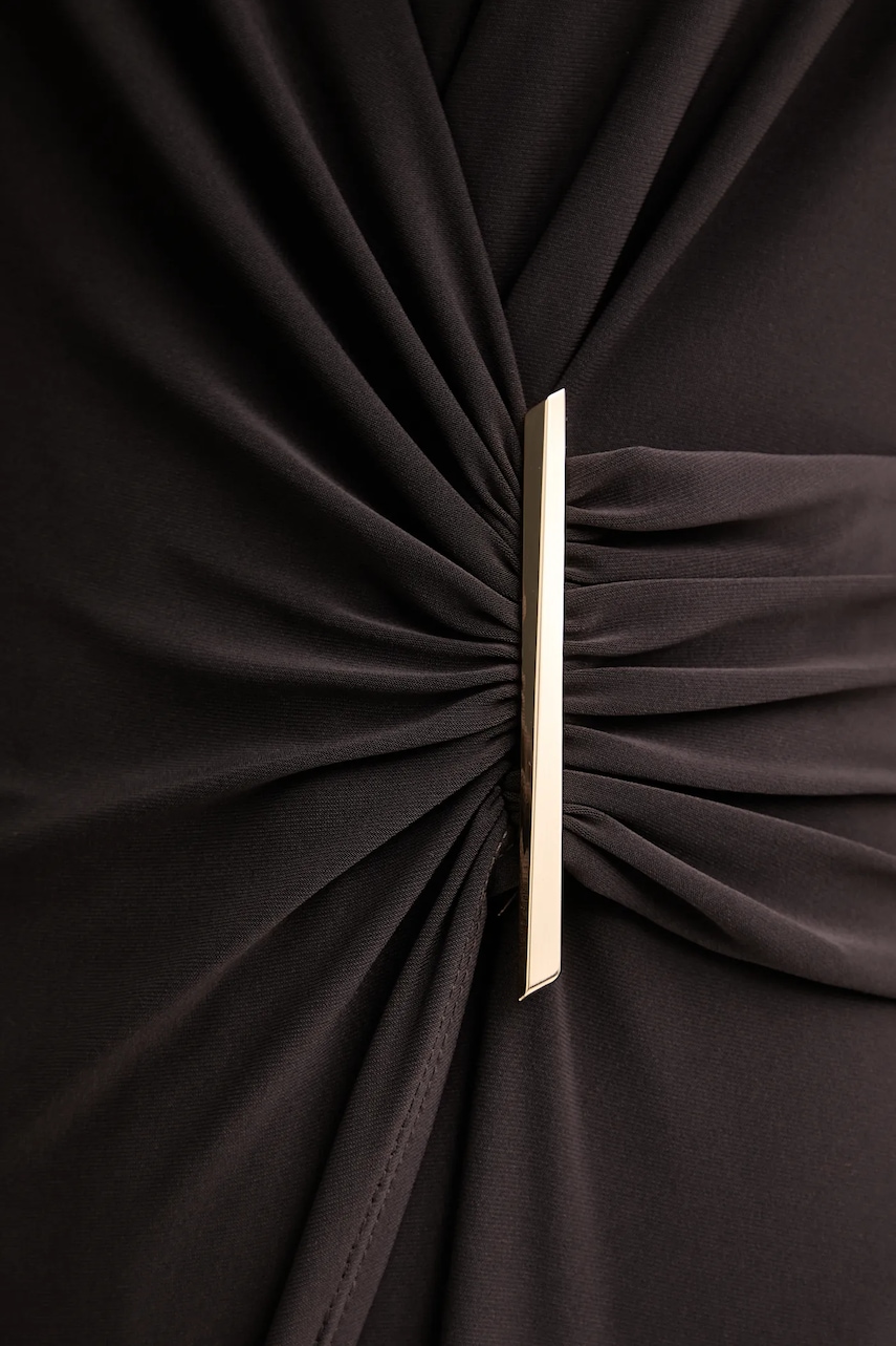 - Prosty, nie blokujący ruchów fason. - Zakładany dekolt. - Model z ozdobnymi marszczeniami. - Cienka, elastyczna dzianina. - Zapięcie na kryty suwak. - Długość rękawa: 64 cm. - Szerokość w pasie: 33 cm. - Szerokość w biodrach: 48 cm. - Szerokość nogawki na dole: 42 cm. - Szerokość nogawki: 39 cm. - Długość wewnętrzna nogawki: 78 cm. - Długość: 142 cm. - Szerokość pod pachami: 44 cm. - Wymiary podane dla rozmiaru: 36.