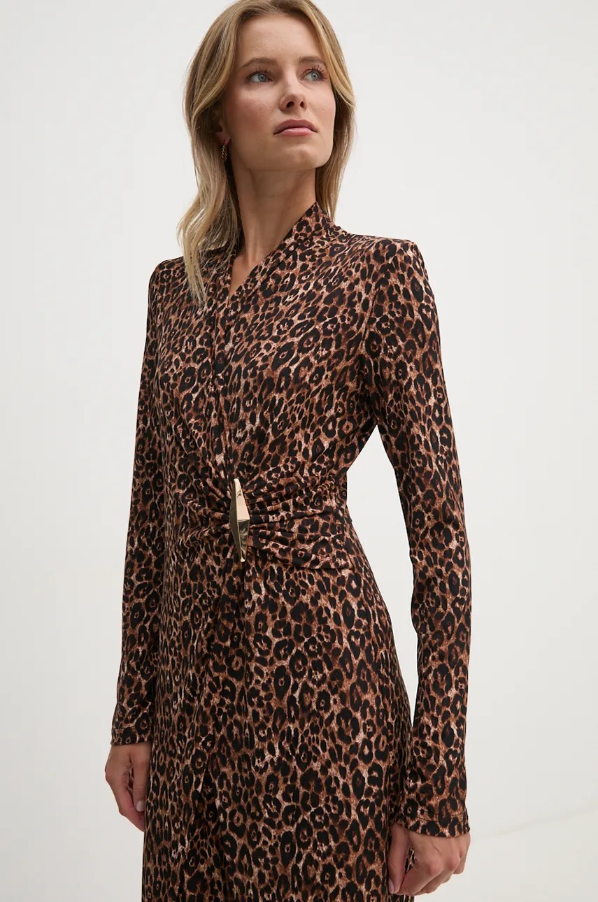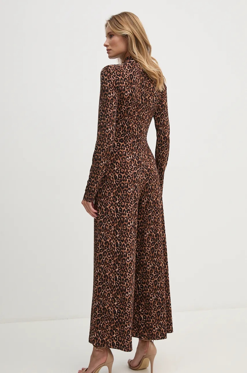 - Prosty, nie blokujący ruchów fason. - Długi rękaw. - Spiczasty dekolt. - Zapięcie na kryty suwak. - Ozdobne marszczenia. - Cienka, elastyczna dzianina. - Długość rękawa: 65 cm. - Szerokość w pasie: 35 cm. - Szerokość w biodrach: 61 cm. - Wysokość stanu: 40 cm. - Szerokość nogawki na dole: 41 cm. - Szerokość nogawki: 41 cm. - Długość wewnętrzna nogawki: 74 cm. - Długość: 150 cm. - Szerokość pod pachami: 50 cm. - Wymiary podane dla rozmiaru: 36.