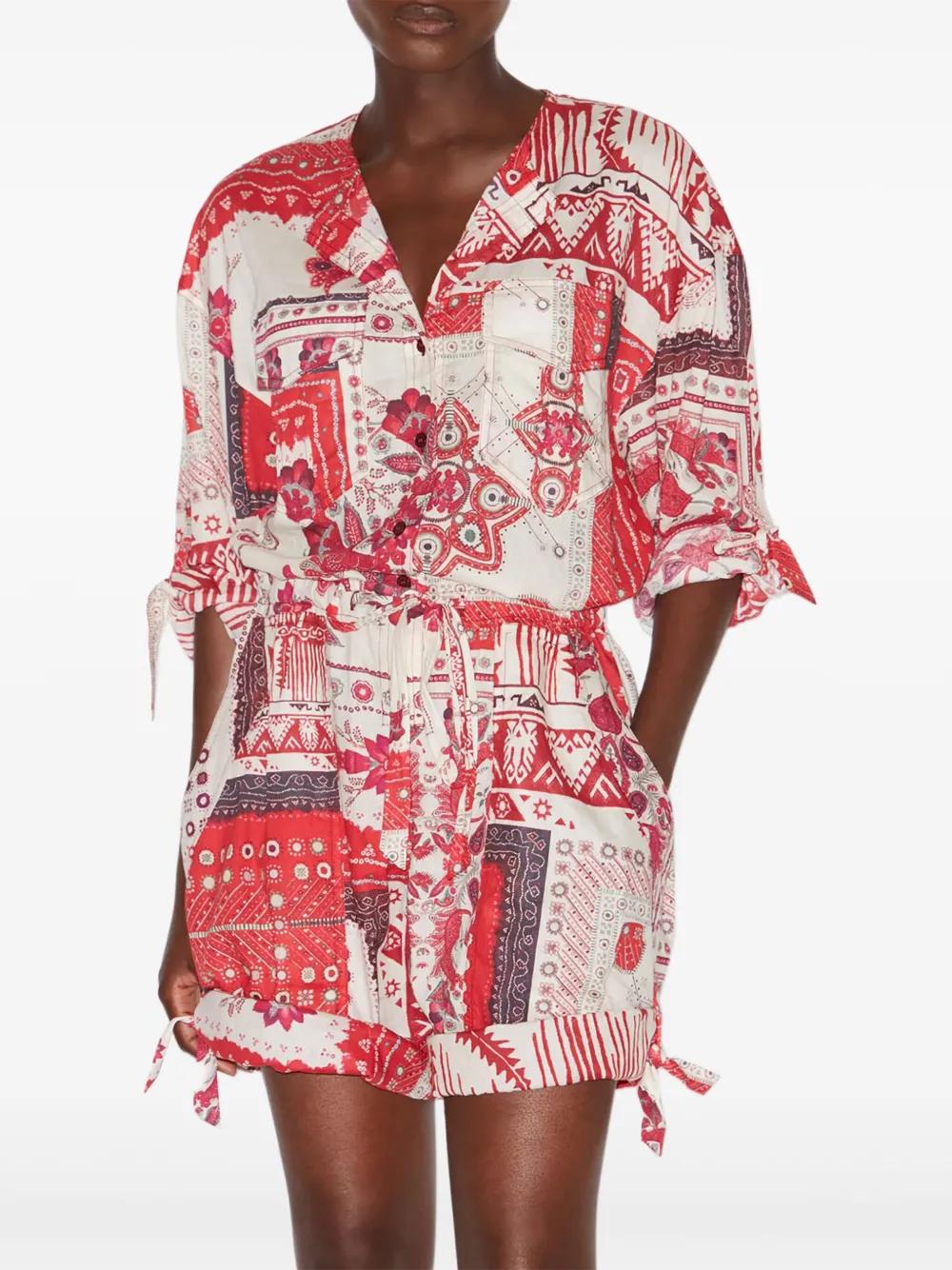 bright red front button fastening drawstring fastening waist two chest flap pockets knot detailing