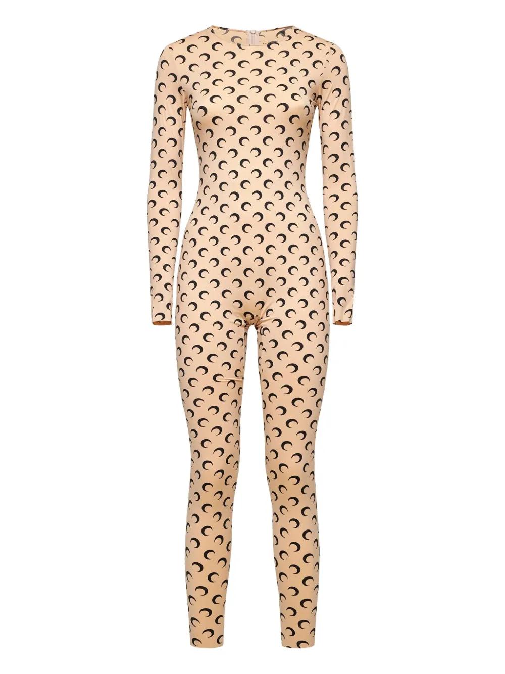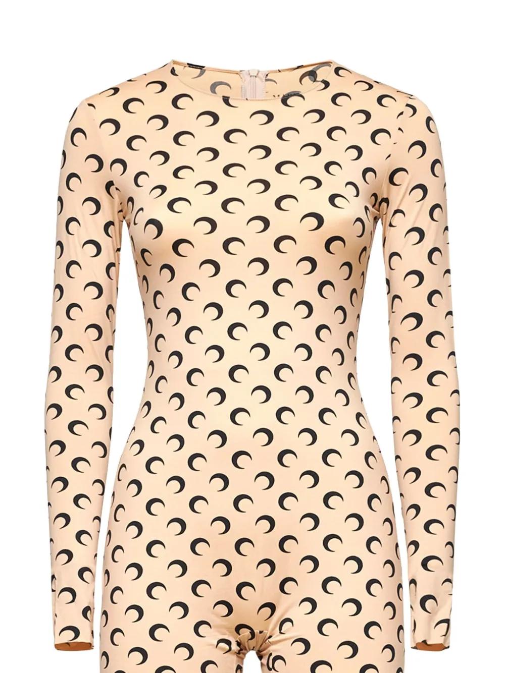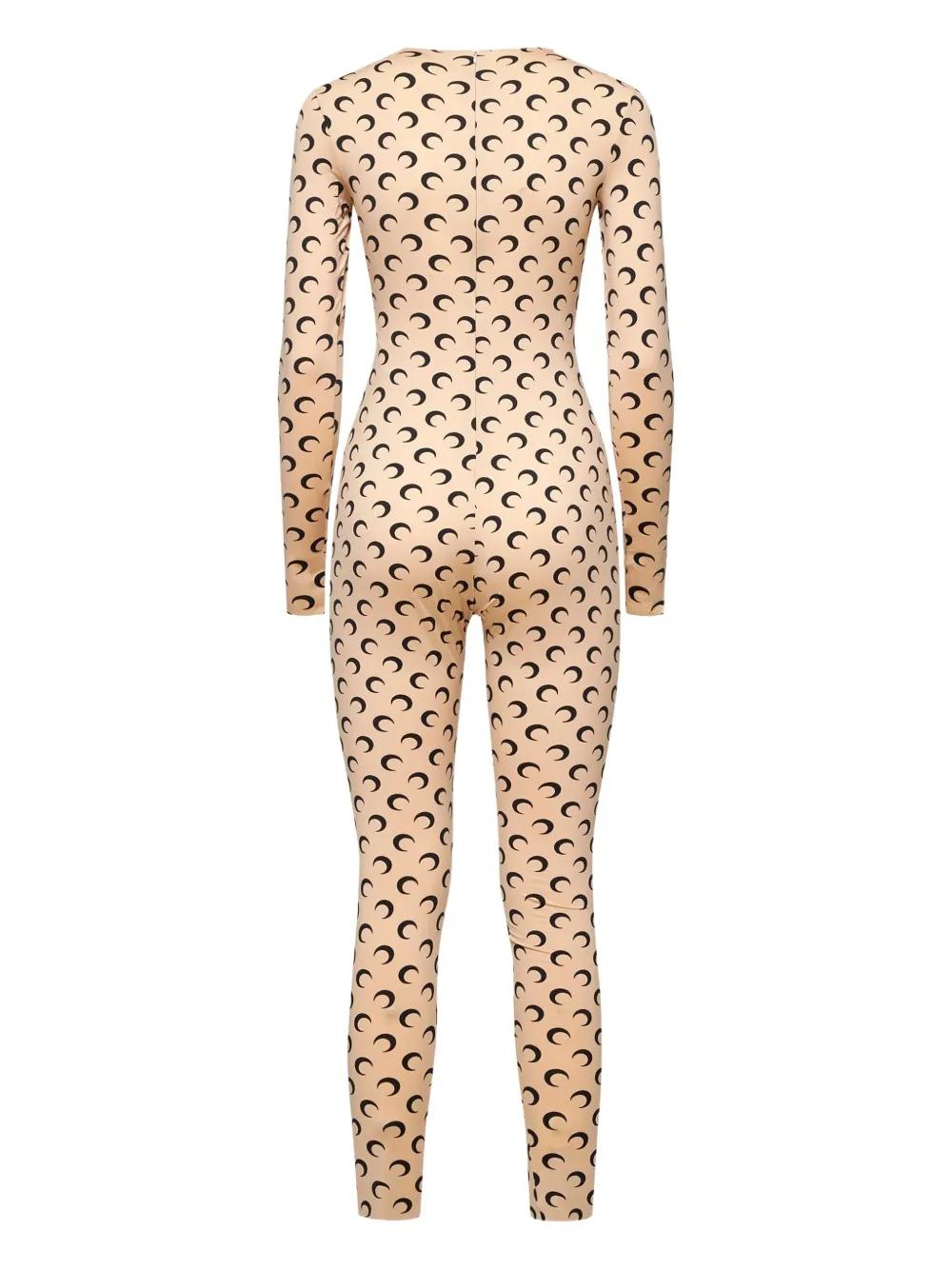 Marine Serre moon-print long-sleeve catsuit - Neutrals