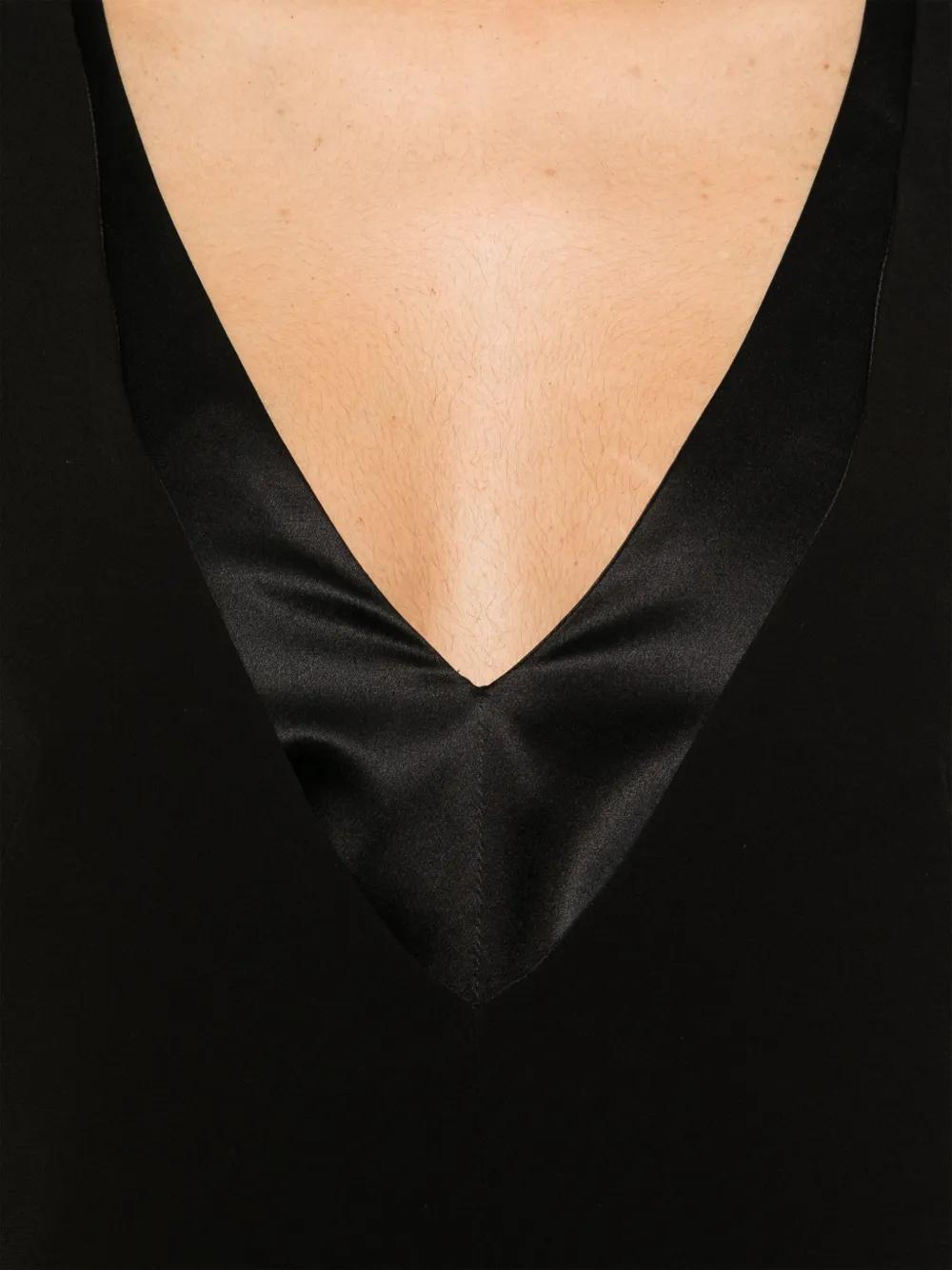 black concealed side hook and zip fastening slip pockets to the sides layered details dart detailing