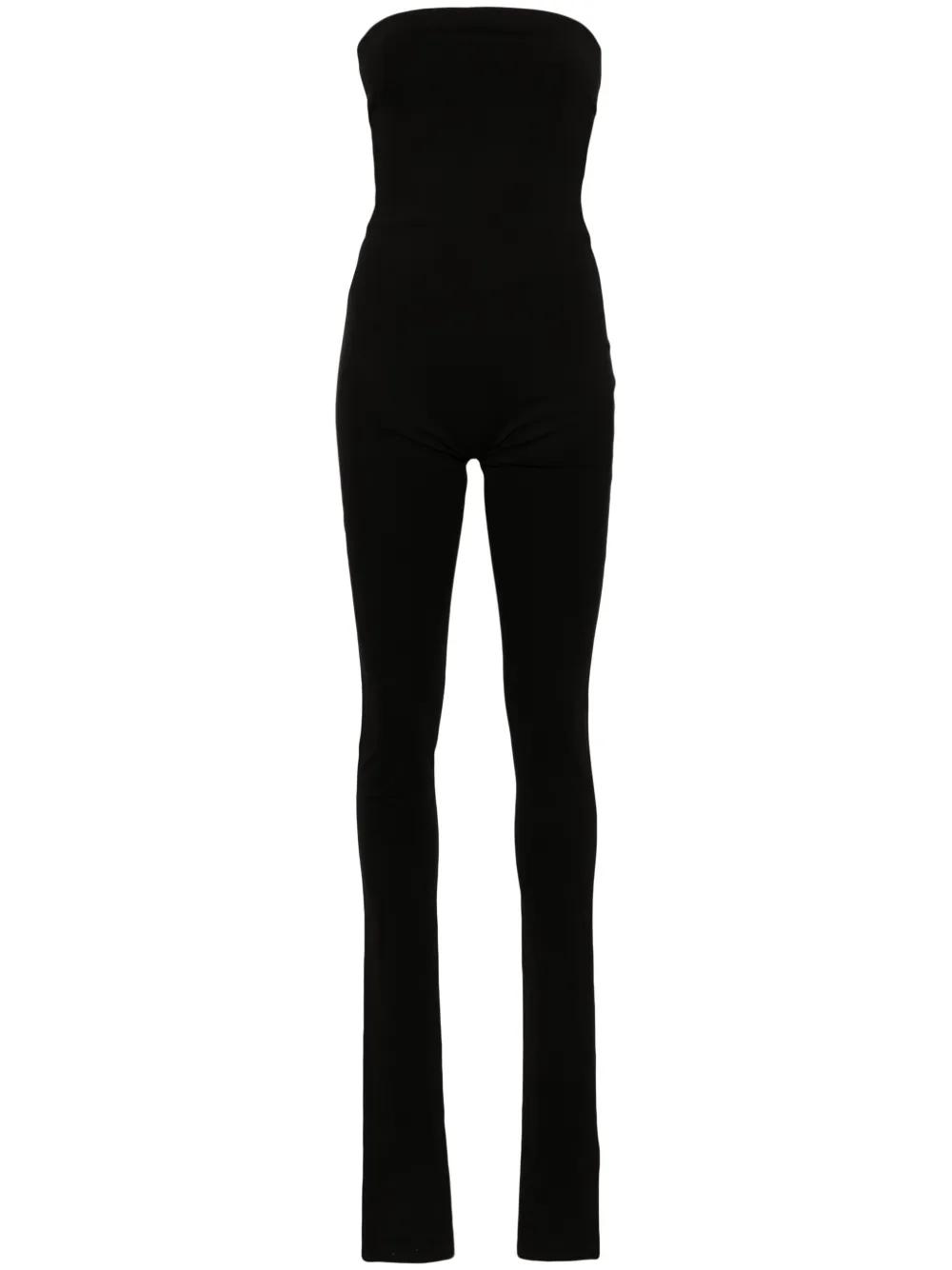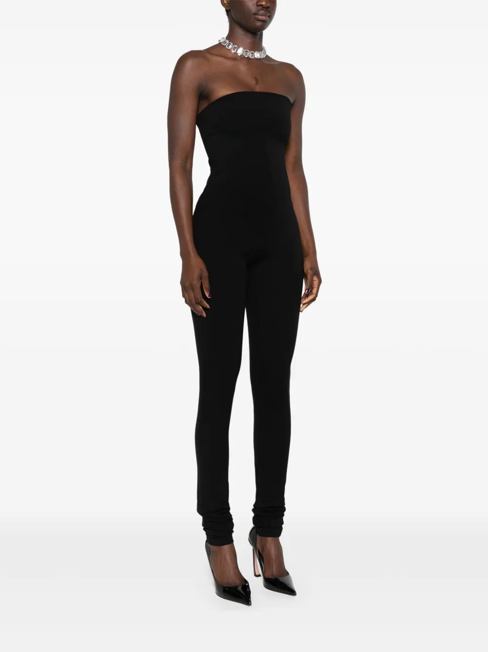 black jersey texture bustier-style neckline strapless skinny cut rear zip fastening