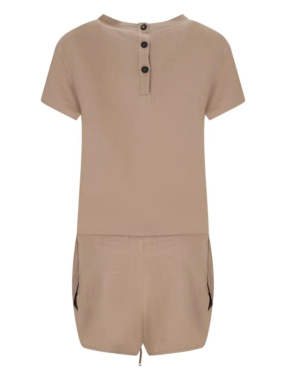 beige short sleeves drawstring waist button fastening round neck embroidered logo
