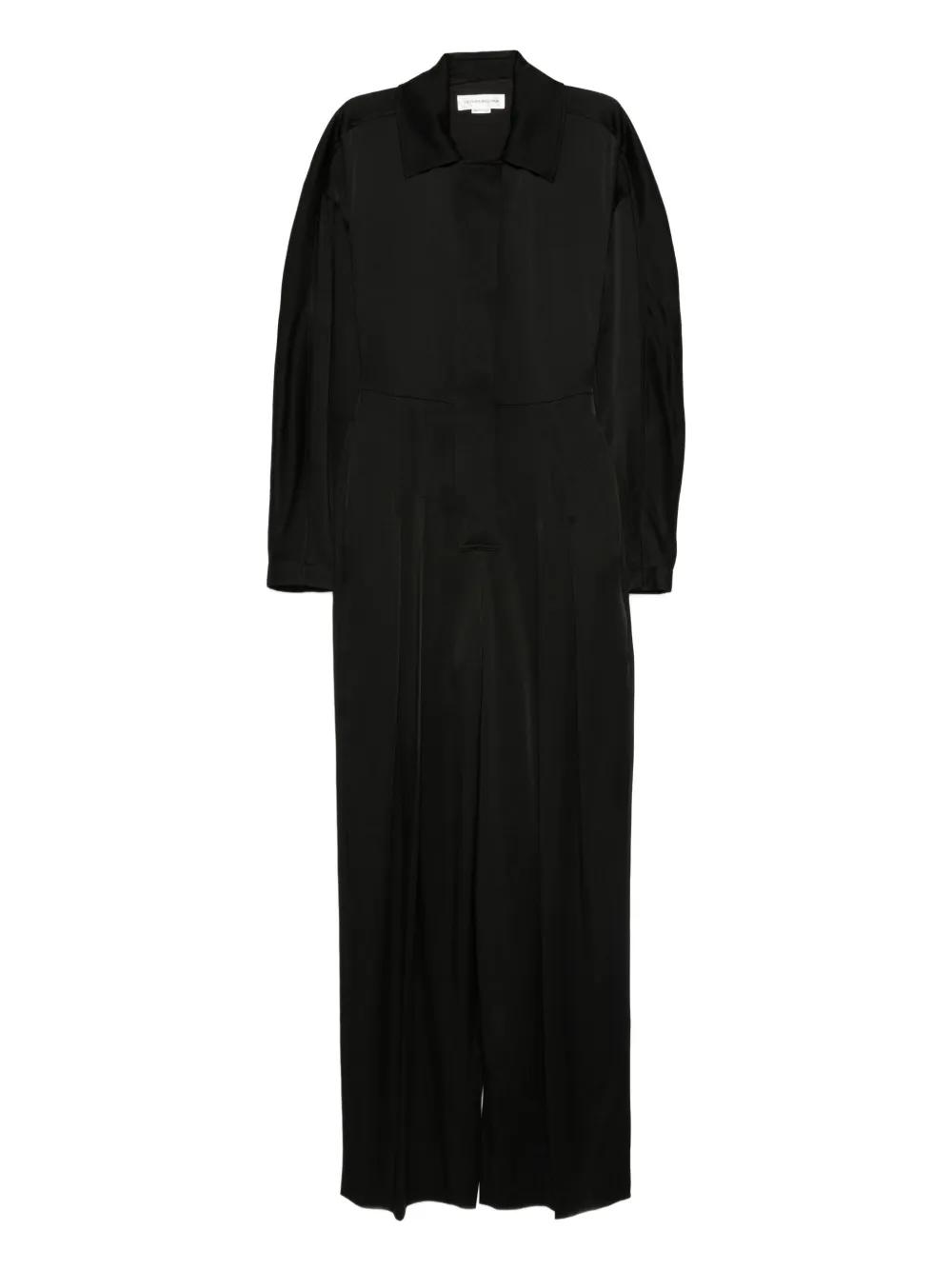 black long sleeves pleated detail collared concealed front fastening wide leg