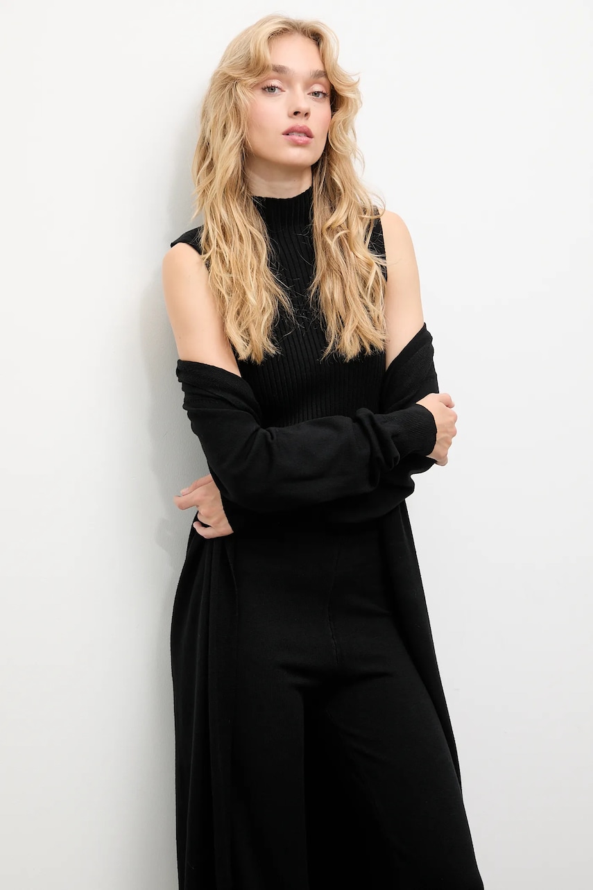 - Prosty, nie blokujący ruchów fason. - Model z półgolfem. - Komfortowa, elastyczna listwa w pasie. - Cienka, elastyczna dzianina. - Długość rękawa(mierzona od dekoltu): 74 cm. - Szerokość w pasie: 31 cm. - Szerokość w biodrach: 47 cm. - Wysokość stanu: 33 cm. - Szerokość nogawki na dole: 25 cm. - Szerokość nogawki: 26 cm. - Długość nogawki: 76 cm. - Długość: 51 cm. - Szerokość pod pachami: 36 cm. - Wymiary podane dla rozmiaru: S/M.