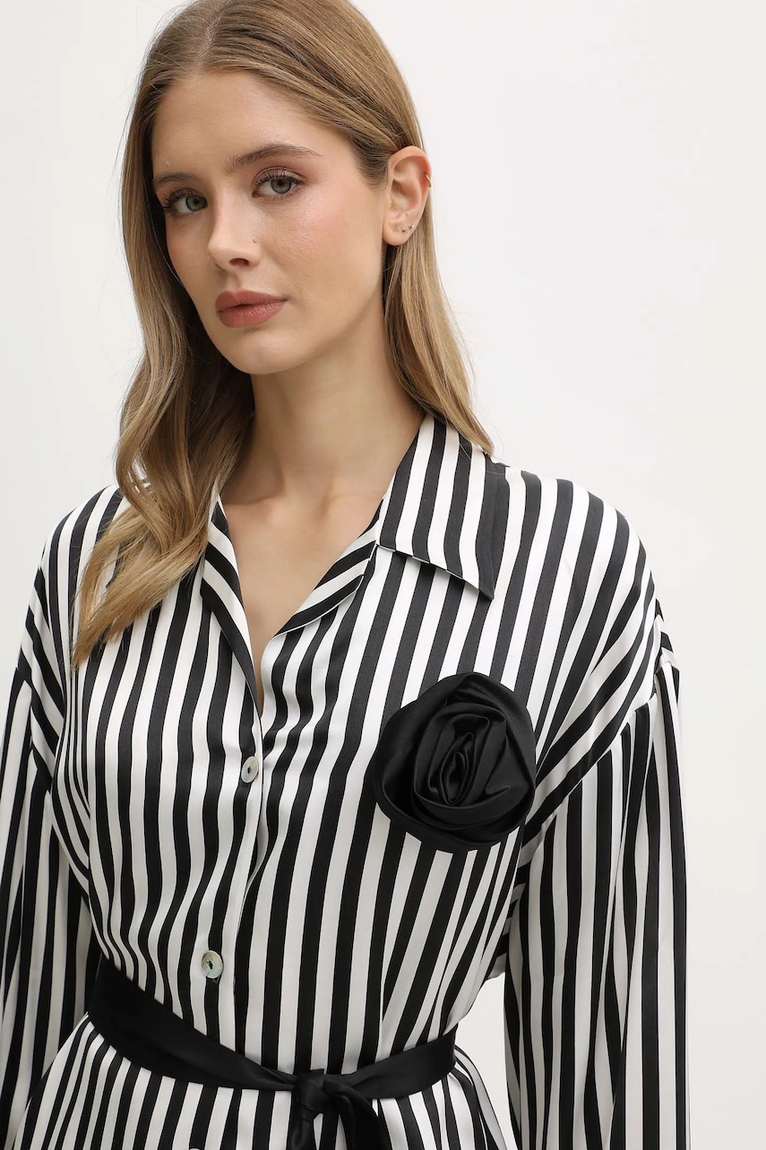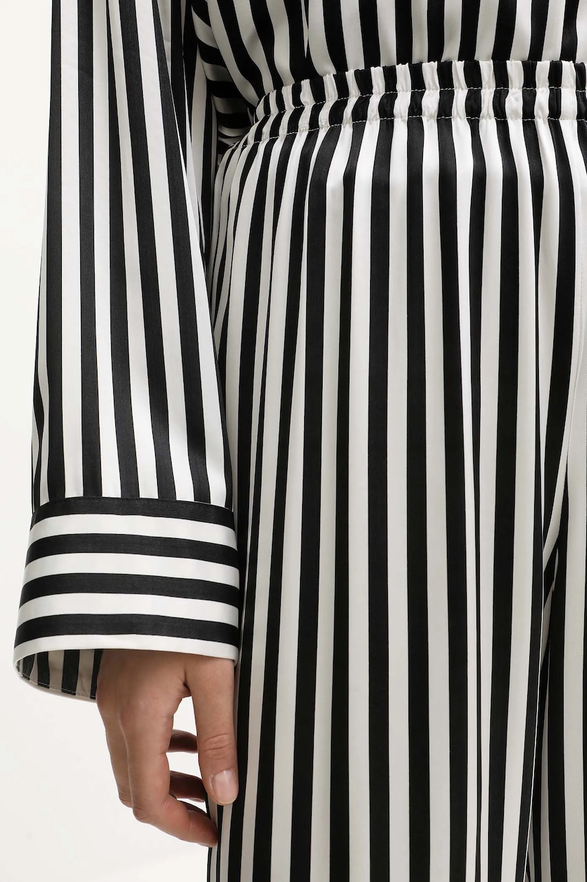 - Model wykonany z miękkiej, przyjemnej dla skóry tkaniny wiskozowej, która jest wysoko oddychająca, nie zatrzymuje ciepła, a także doskonale pochłania wilgoć z powierzchni ciała. - Luźny krój zapewniający pełną swobodę ruchów. - Miękki kołnierzyk typu bowling. - Krój rękawa z obniżoną linią ramion nie ogranicza mobilności. - Wygodne zapięcie na guziki ułatwia zakładanie i zdejmowanie. - Dołączony tekstylny pasek. - Spodnie luźne w okolicy bioder i ud. - Wysoki stan zapewnia komfort podczas aktywności i pozwala optycznie wyszczuplić sylwetkę. - Elastyczna listwa w pasie zapobiega zsuwaniu się podczas ruchu. - Prosta nogawka na całej długości. - Wzorzysta tkanina.
