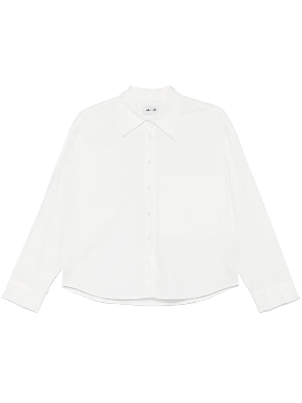 white front button fastening classic collar buttoned cuffs chest patch pocket