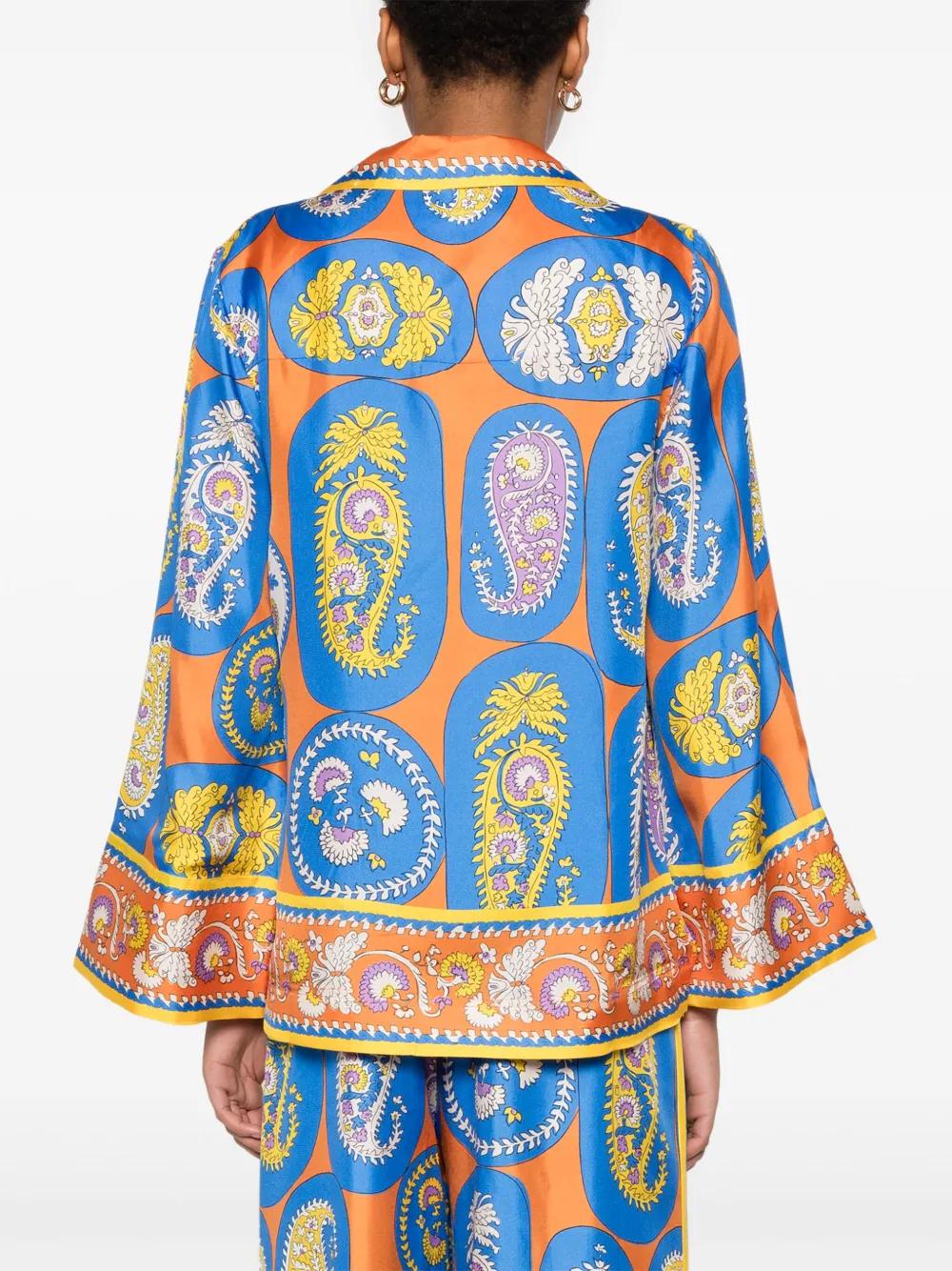 tangerine orange front button fastening notched lapels long wide sleeves chest patch pocket