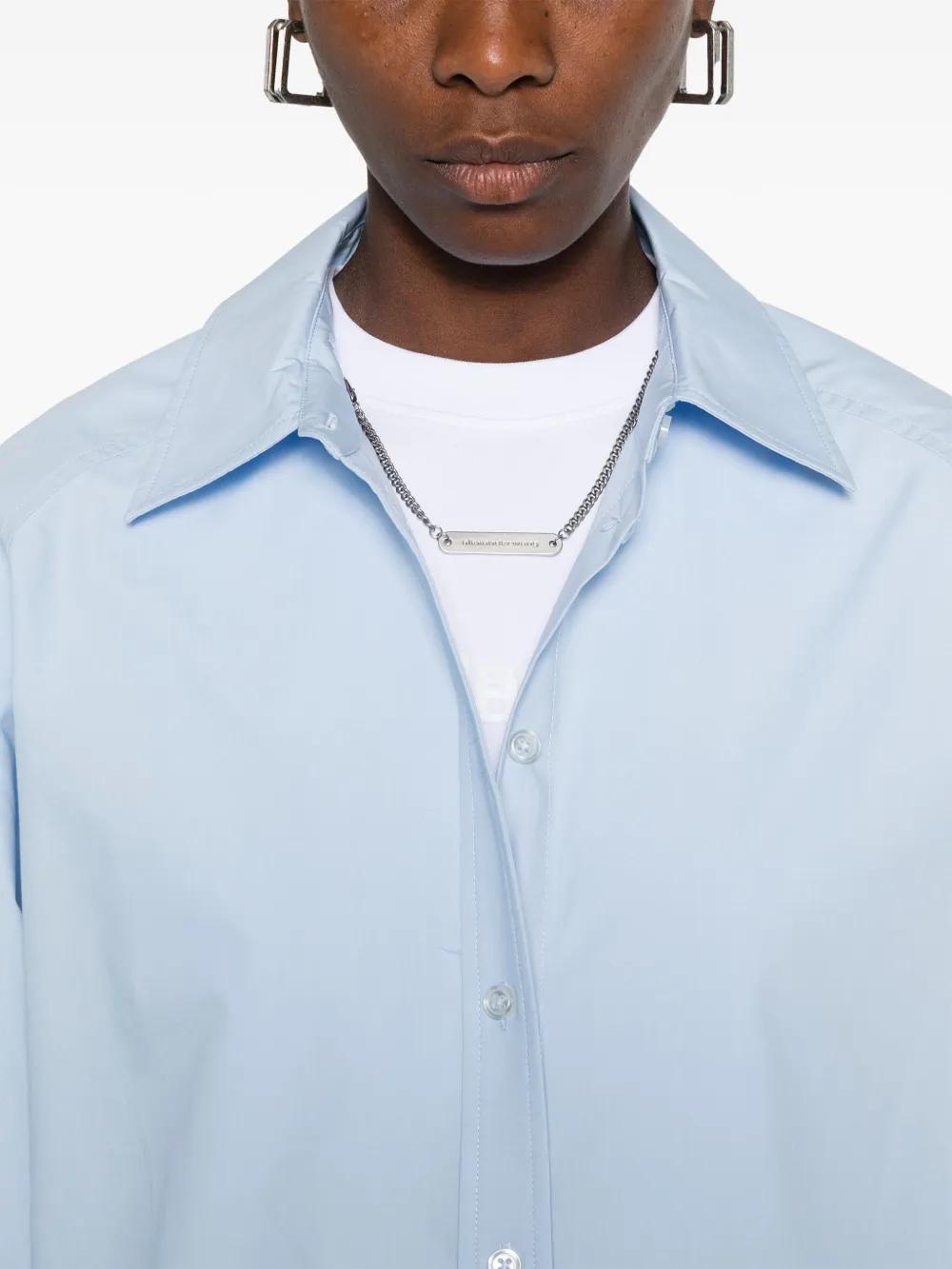 blue front button fastening long sleeves buttoned cuffs curved hem