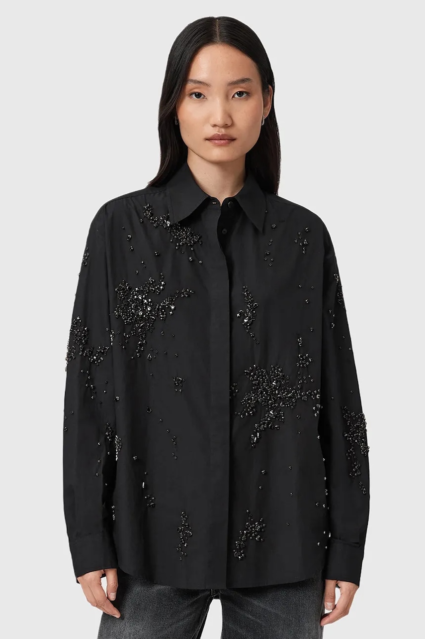 AllSaints koszula bawełniana GEMI damska kolor czarny regular z kołnierzykiem klasycznym W028PD