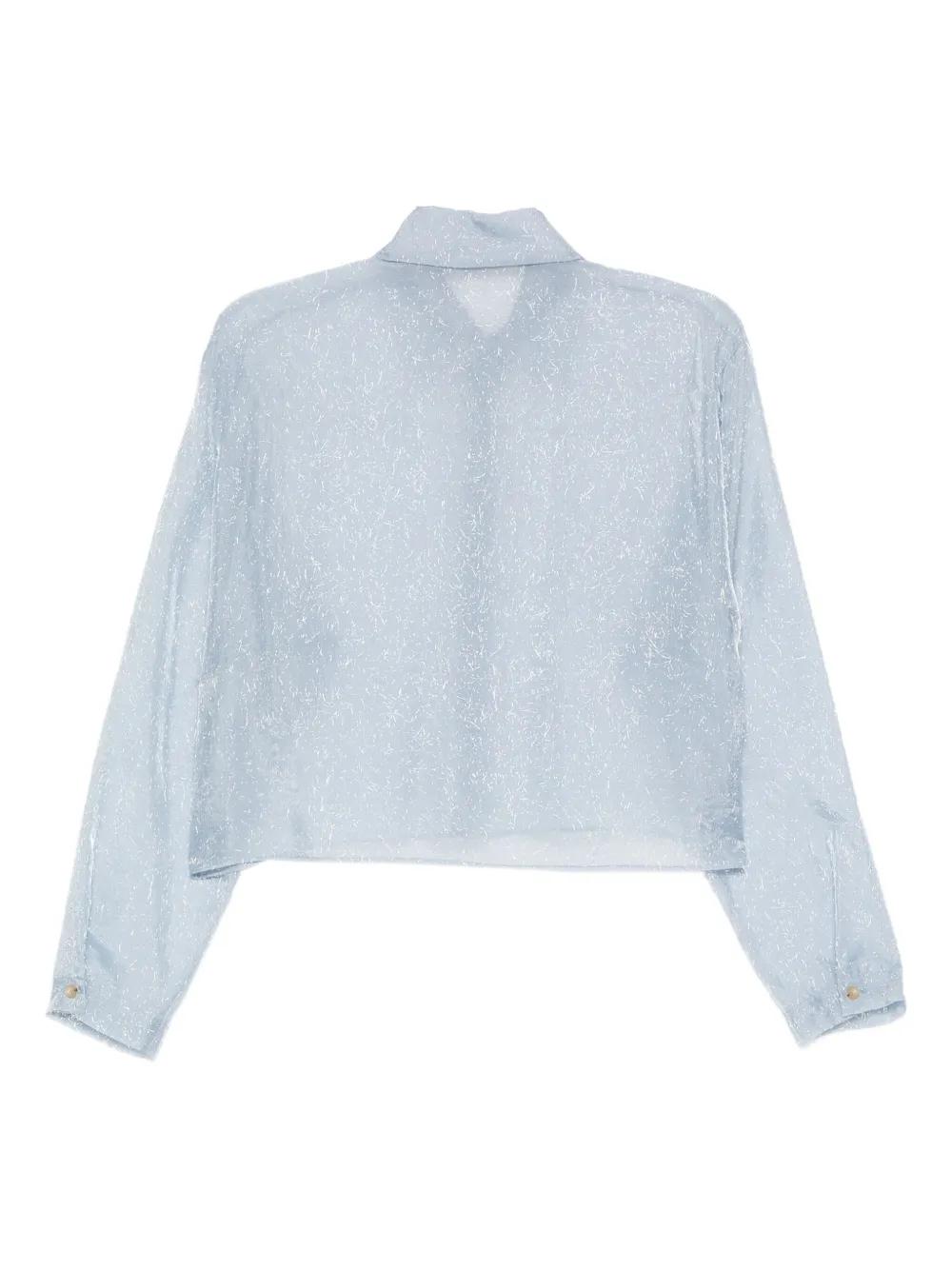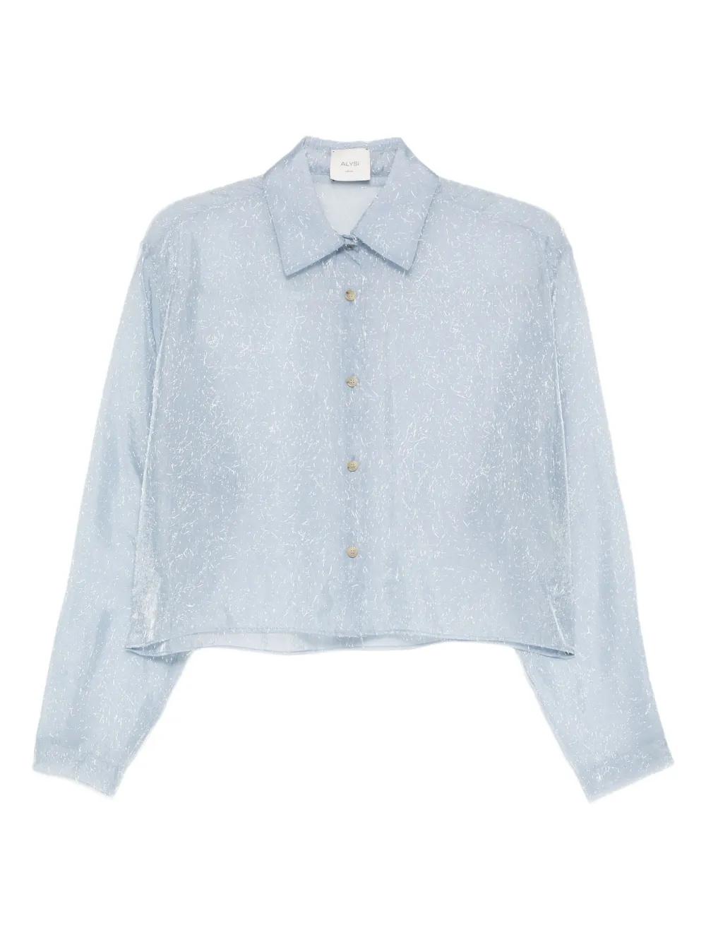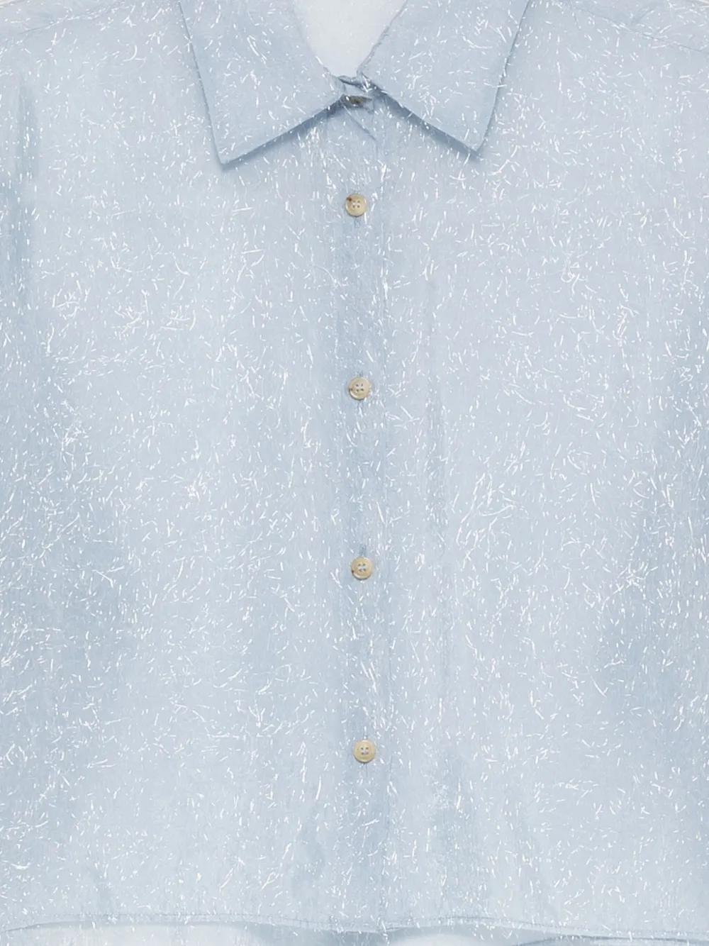 light blue speckled pattern long sleeves button fastening collared neck cropped hem