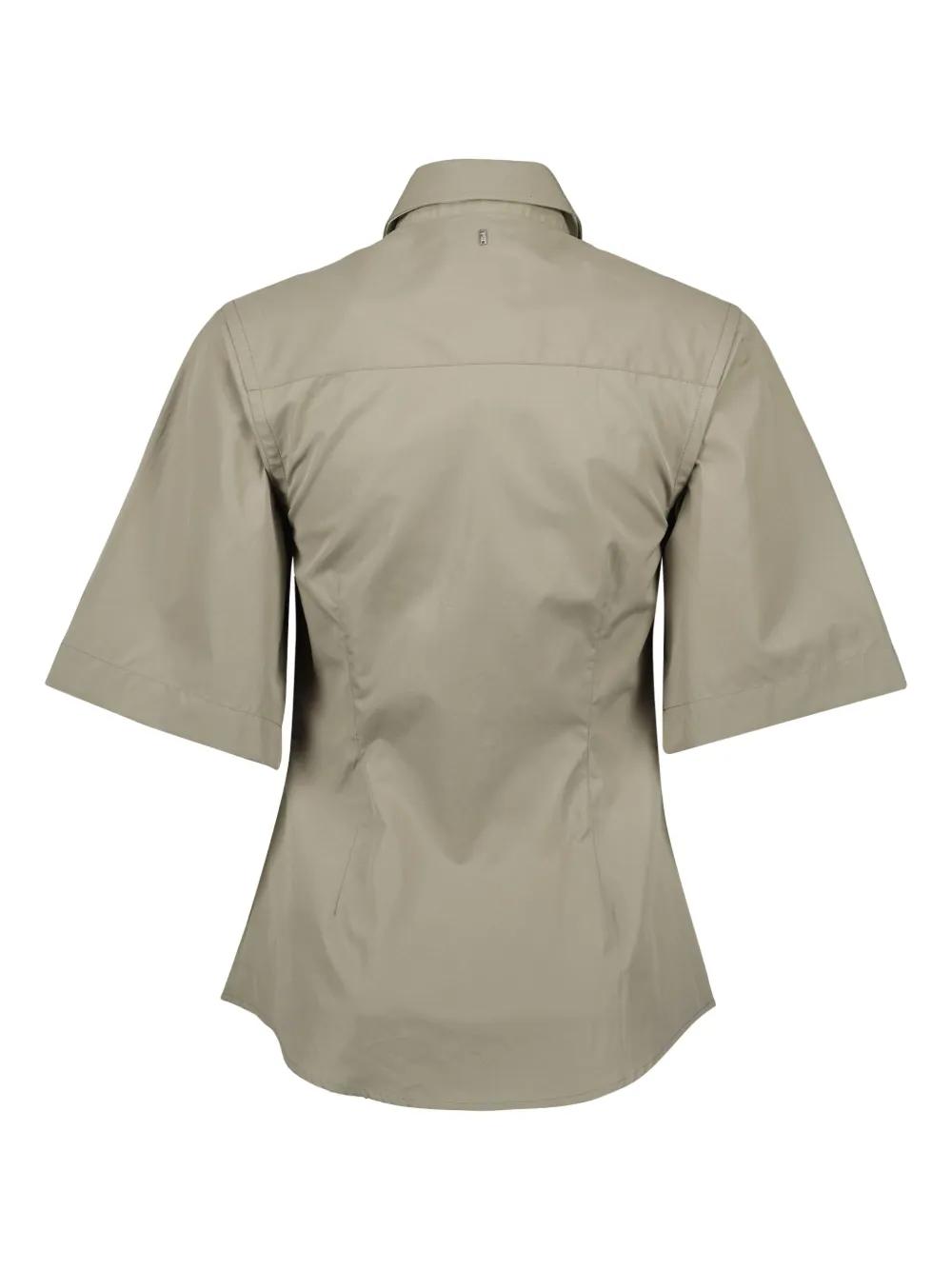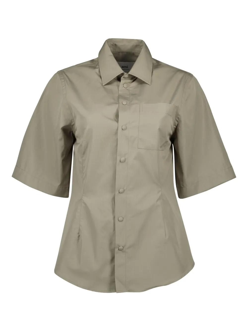 sage green front button fastening spread collar chest patch pocket short sleeves