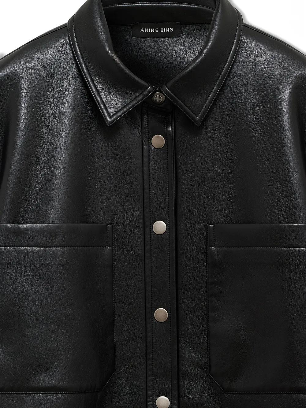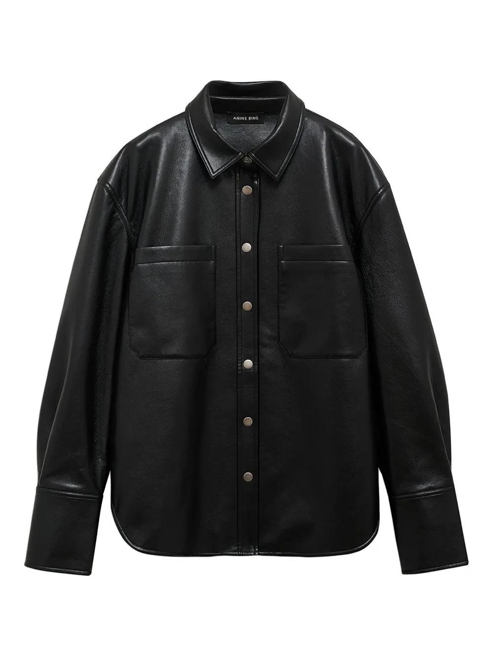 black chest pockets snap fastening long sleeves buttoned cuffs classic collar