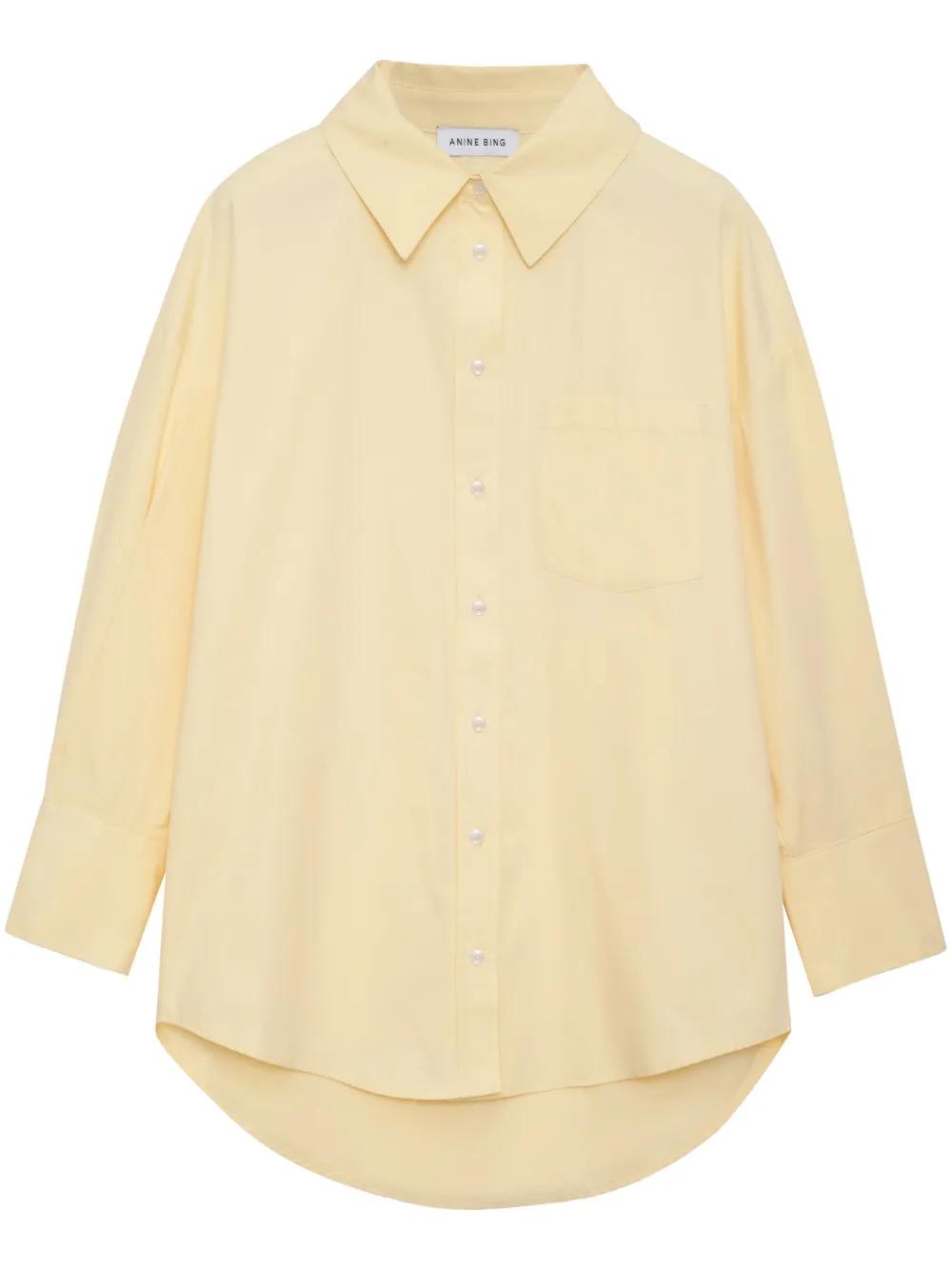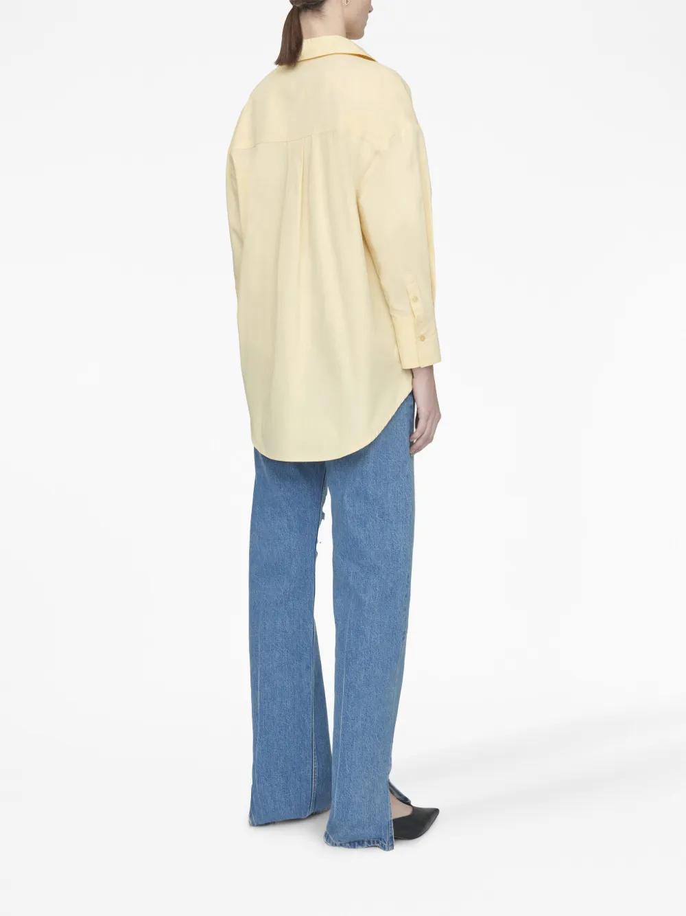 yellow cotton classic collar long sleeves front button fastening chest patch pocket curved hem
