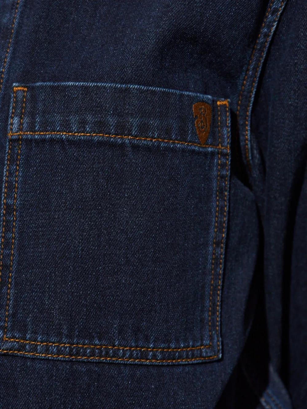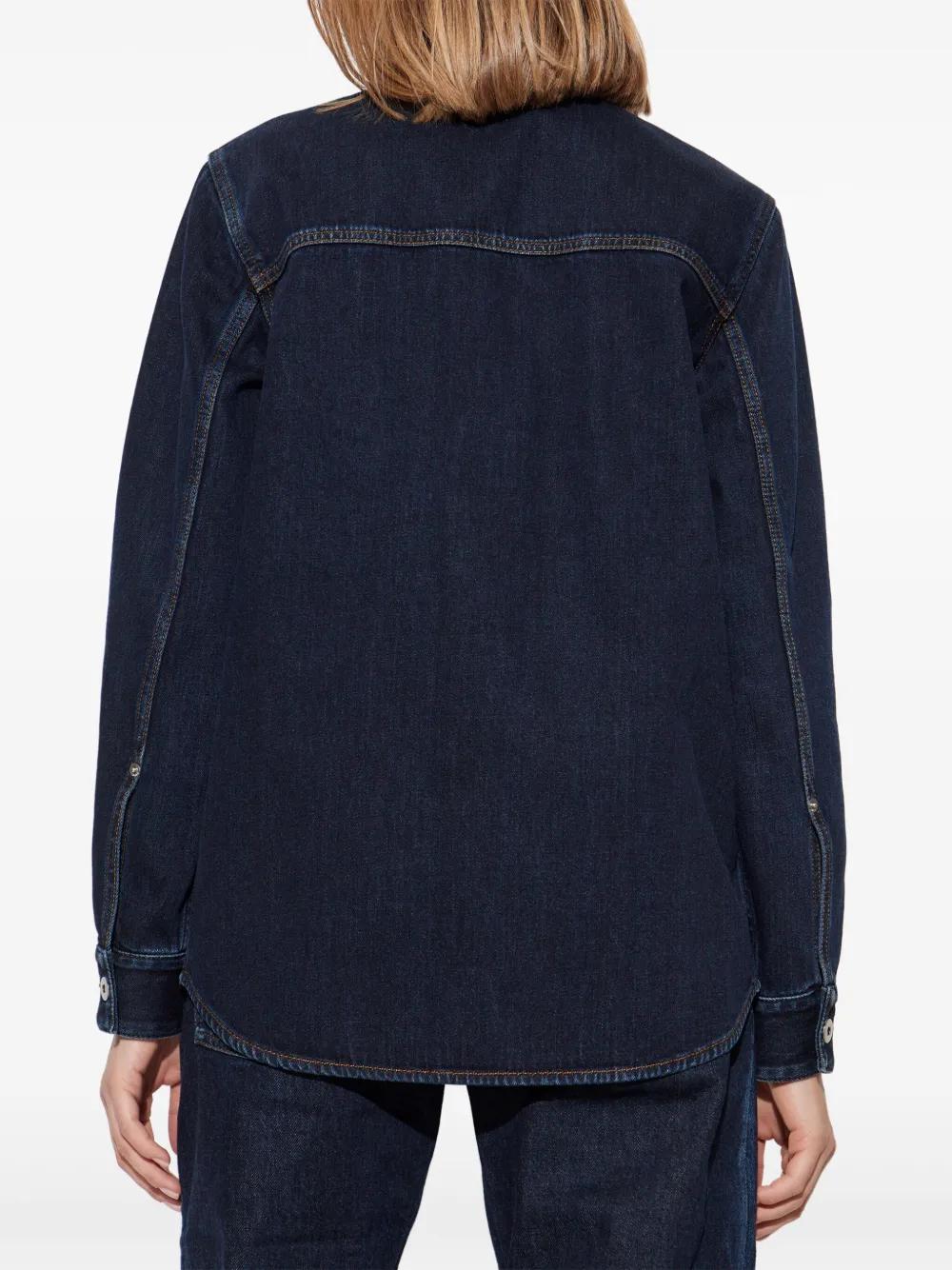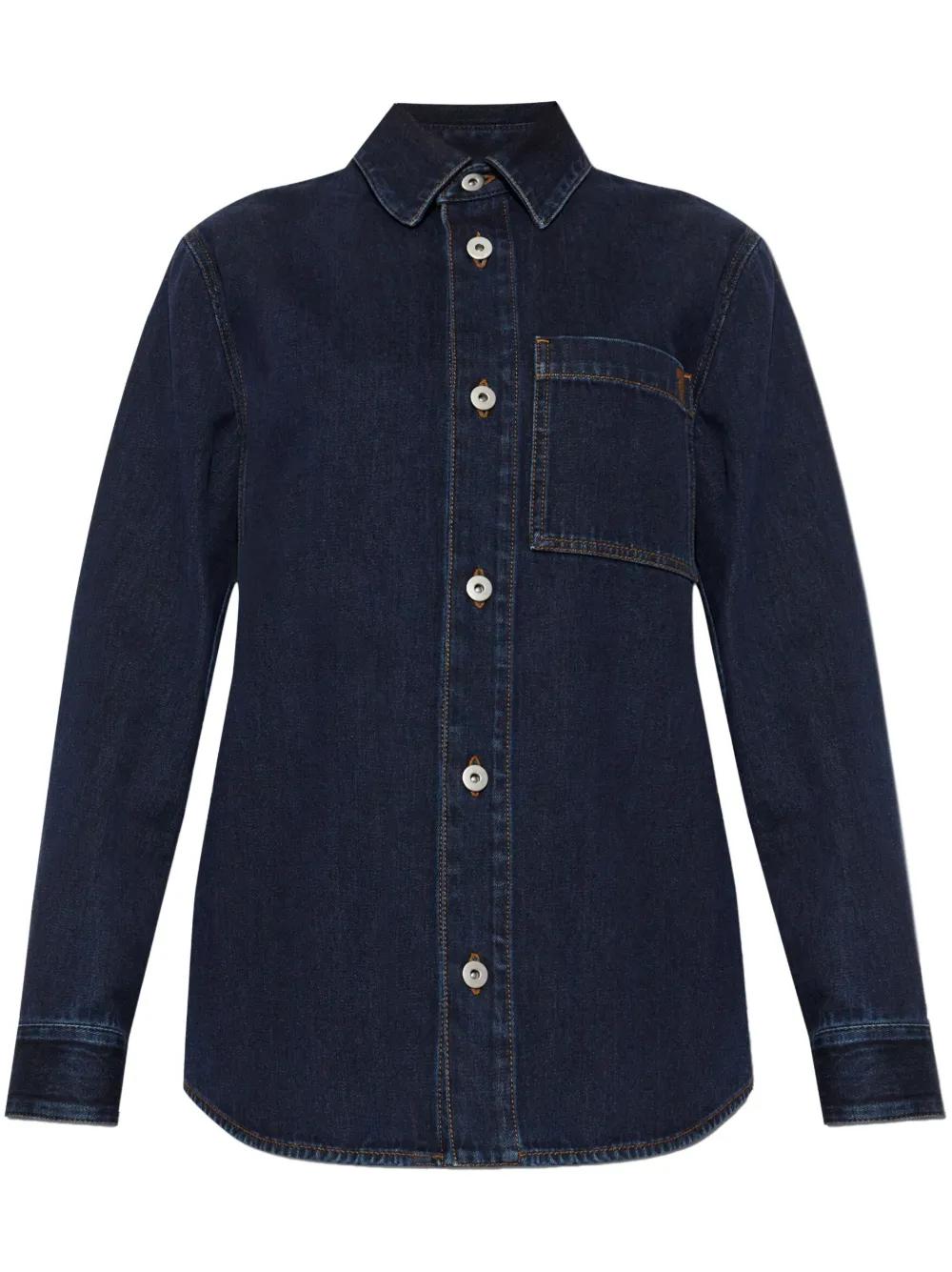 indigo blue front button fastening buttoned-cuff sleeves chest patch pocket cutaway collar