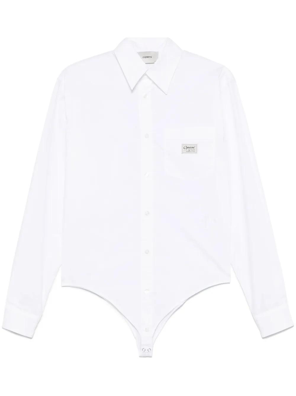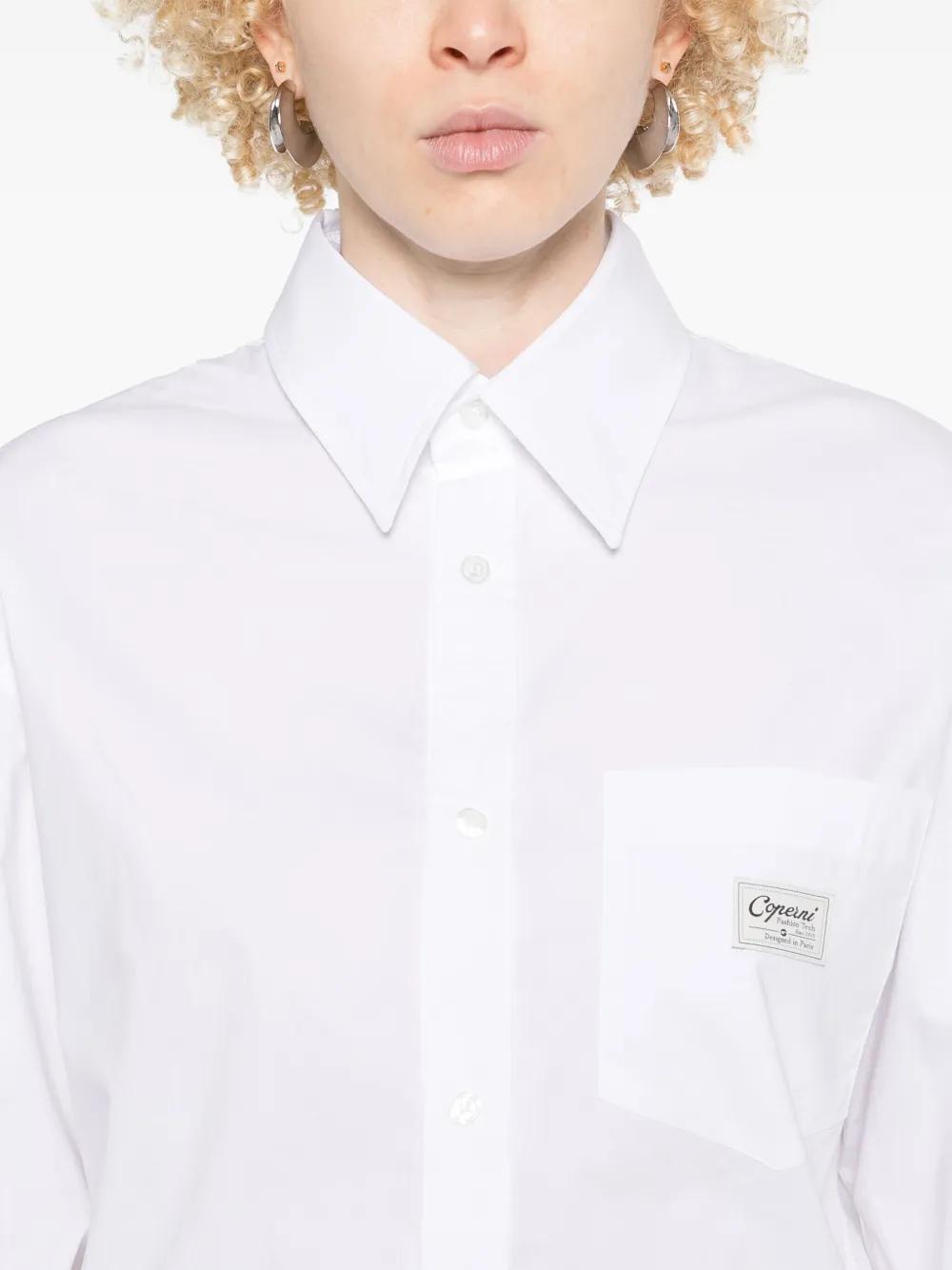 white cotton poplin texture shirt-style design front button fastening press-stud fastening classic collar long sleeves buttoned cuffs chest patch pocket logo patch at the chest Just a reminder that this piece must be tried on over your own garments.