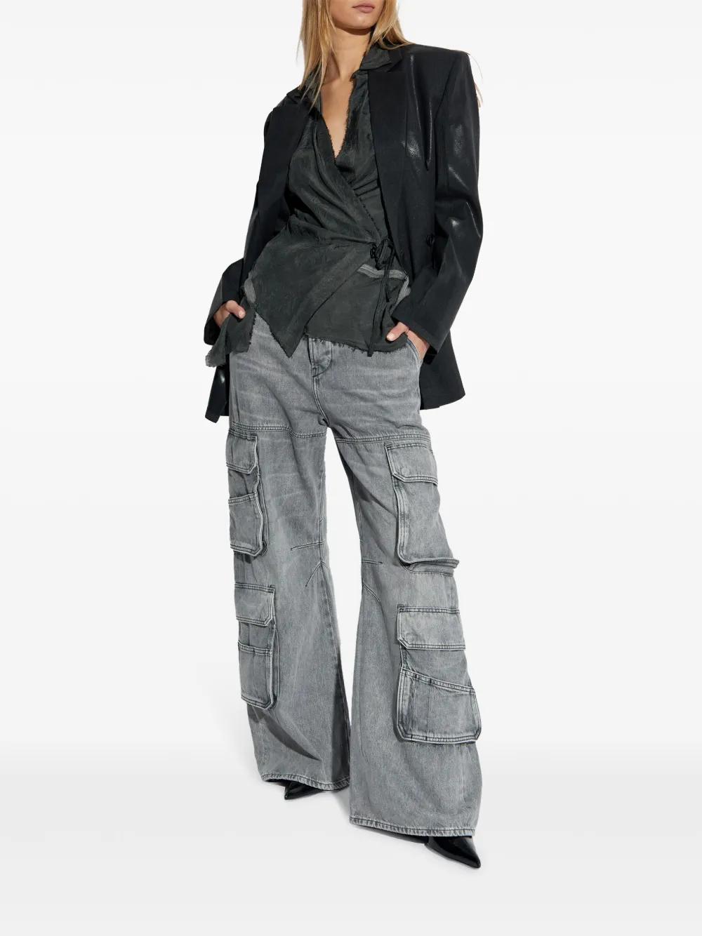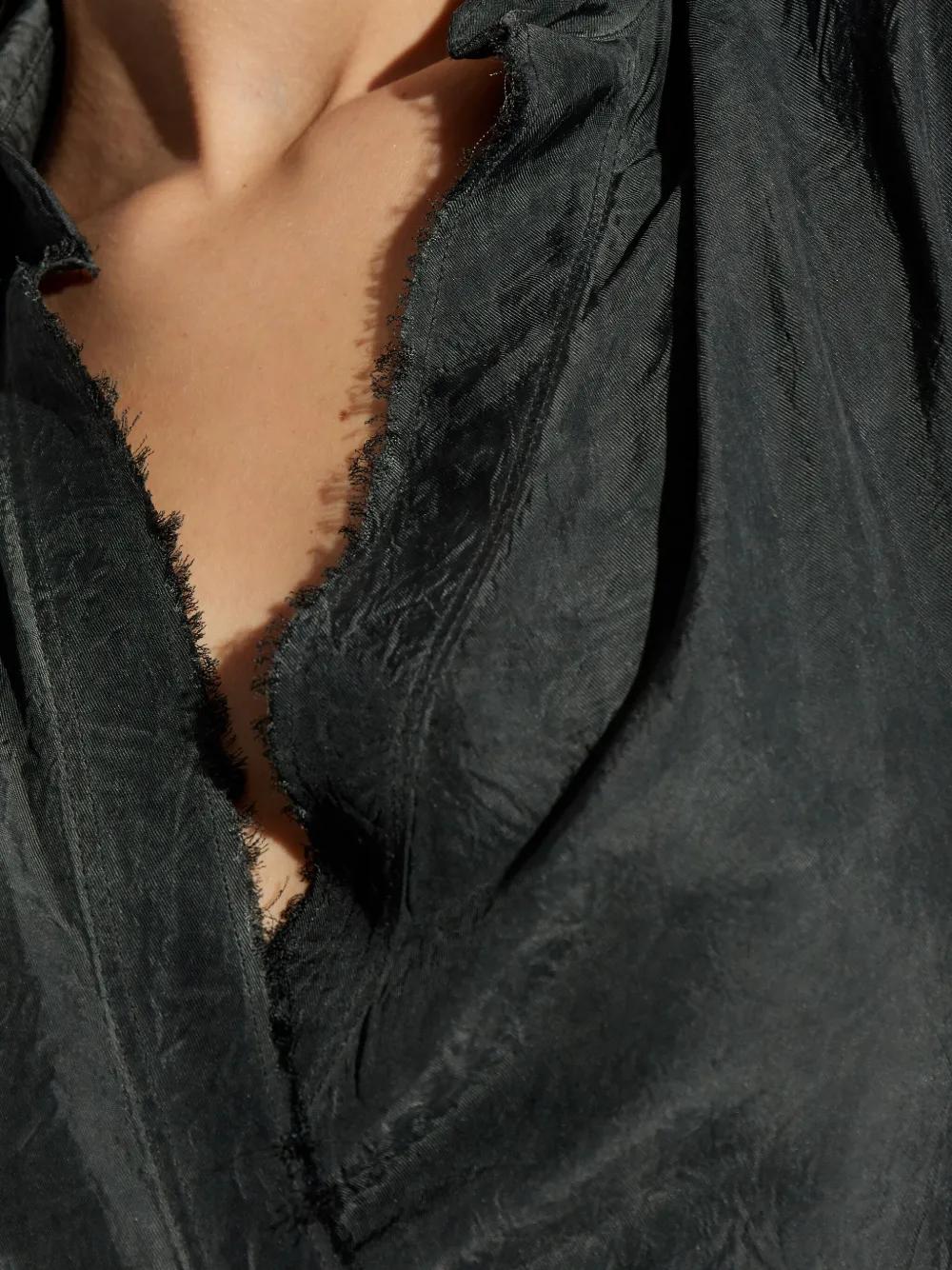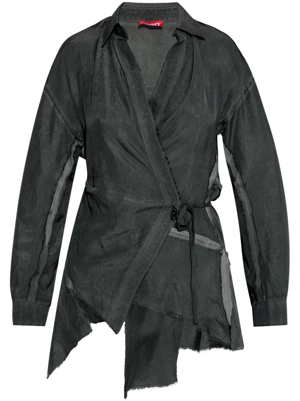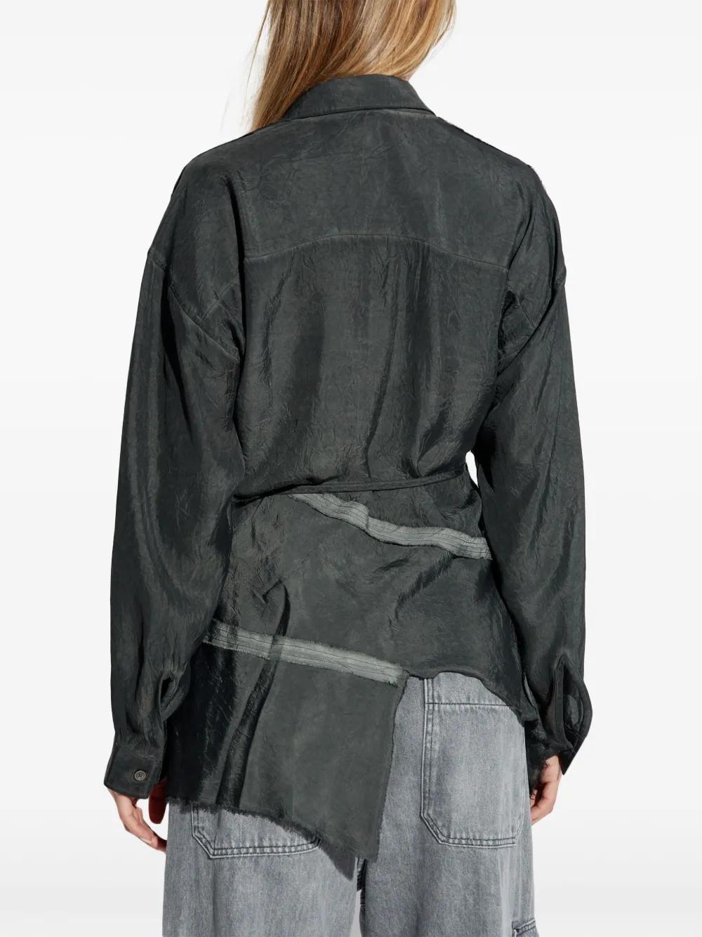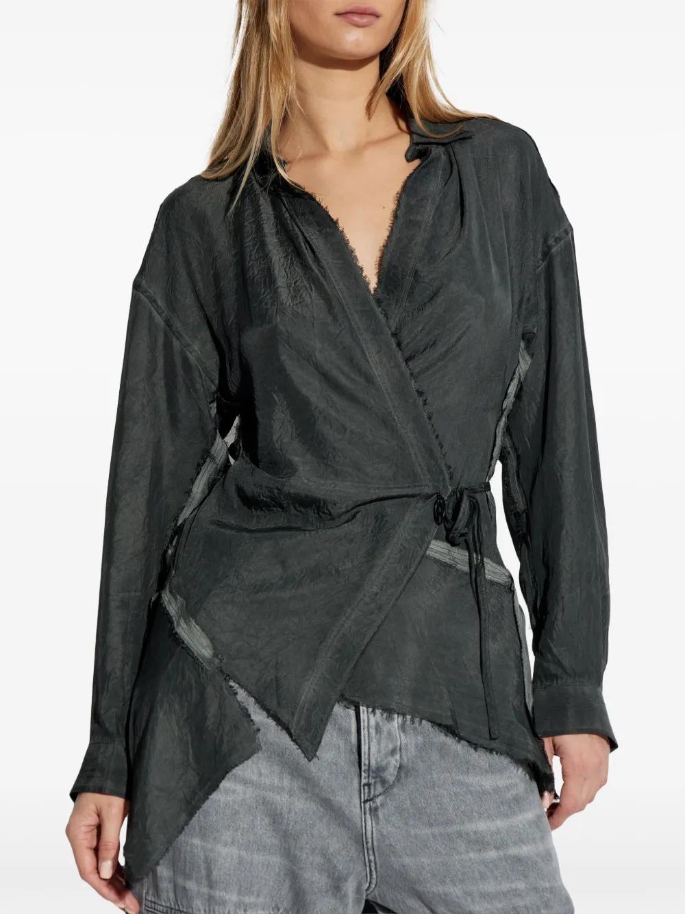 dark grey side tie fastening spread collar asymmetric design long sleeves