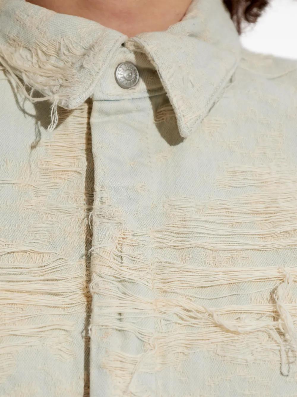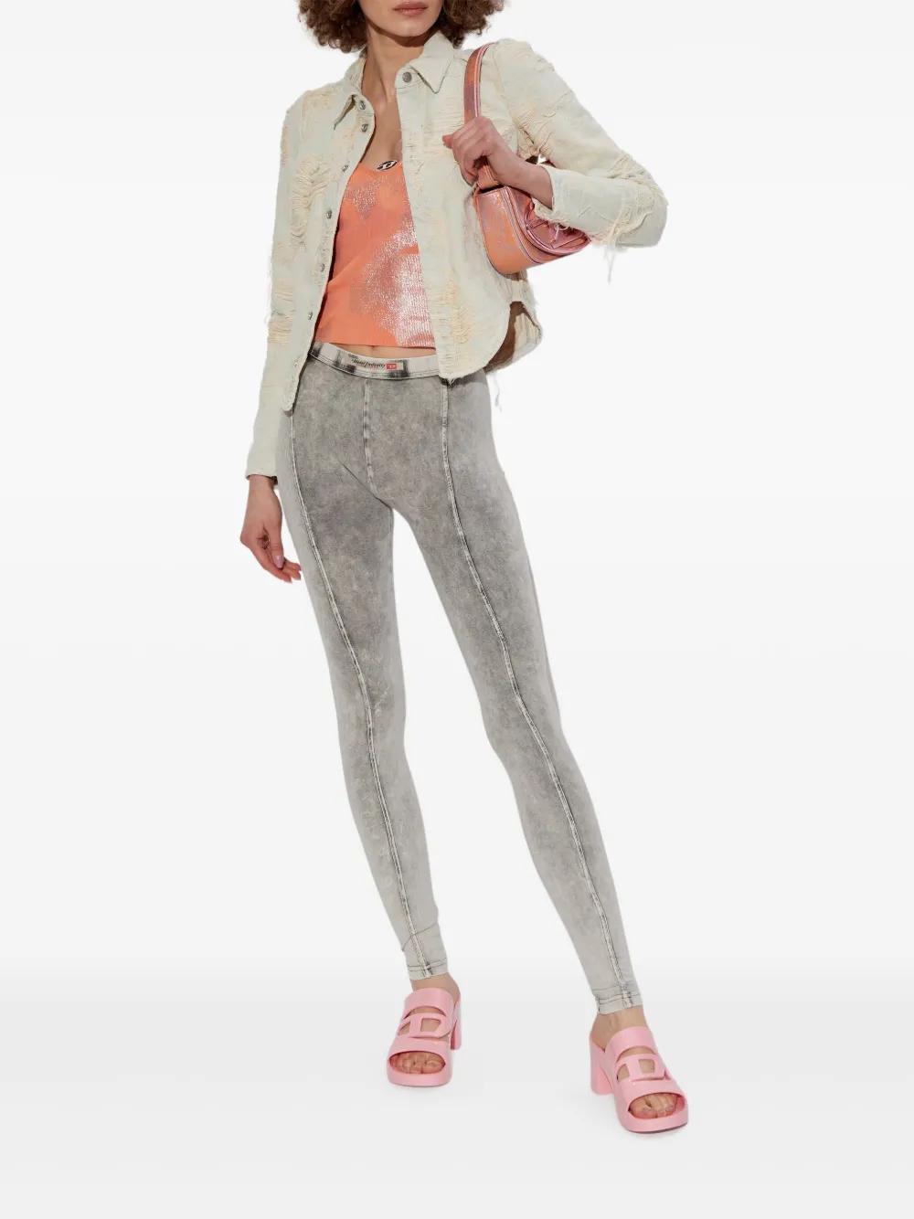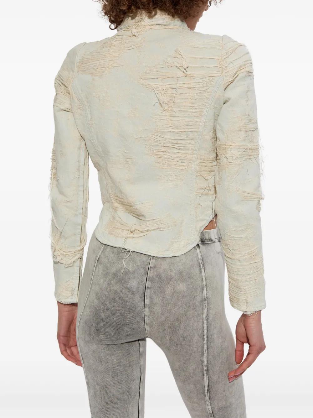 light grey concealed front fastening distressed effect curved hem cropped