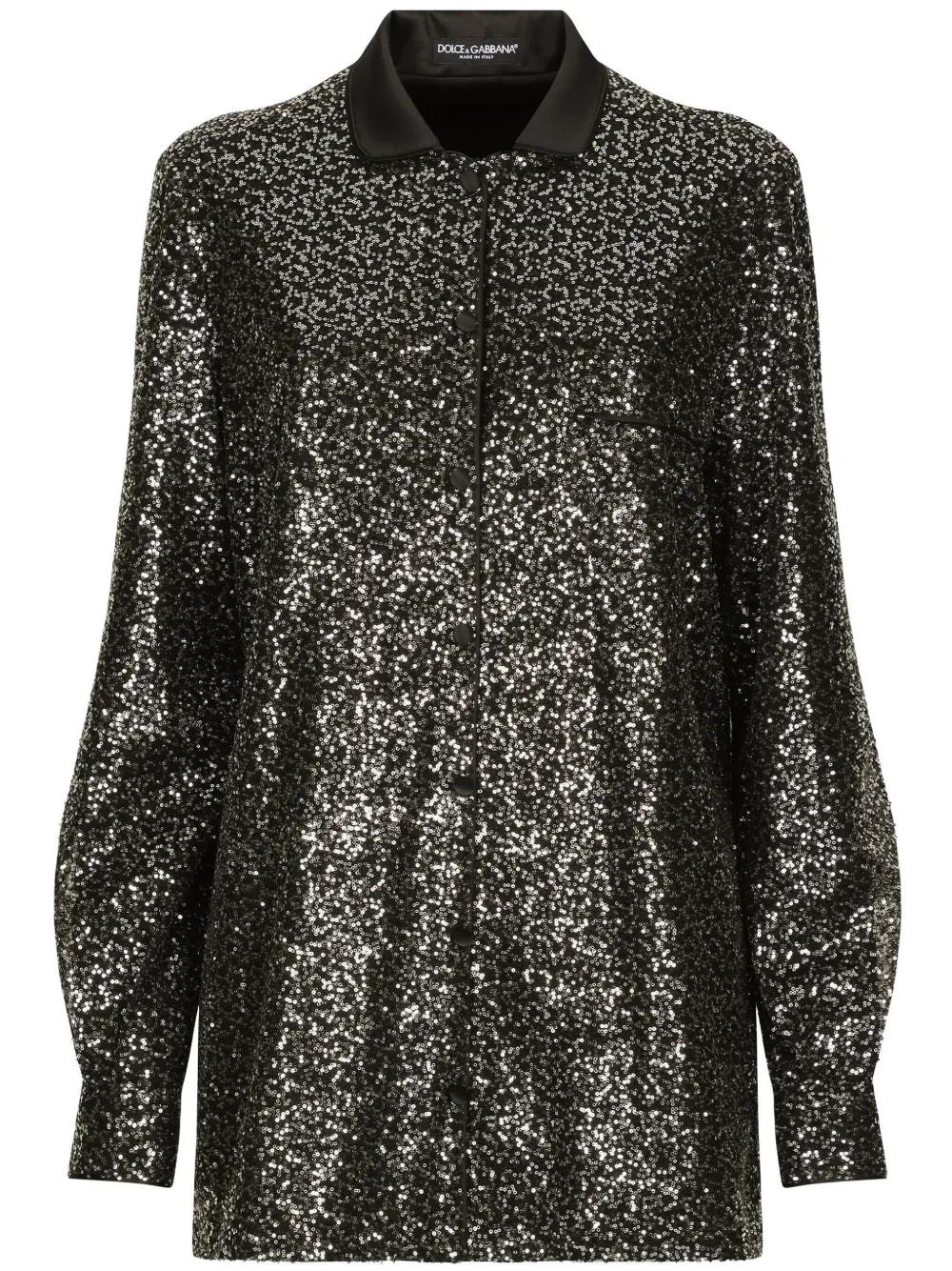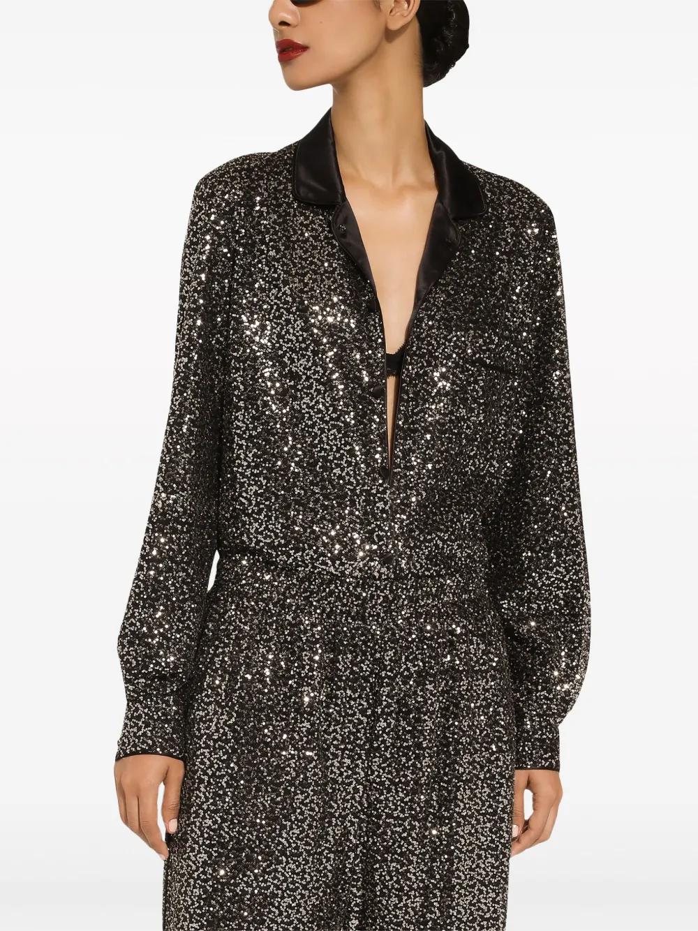 Dolce & Gabbana satin-collar sequin-embellished shirt - Black