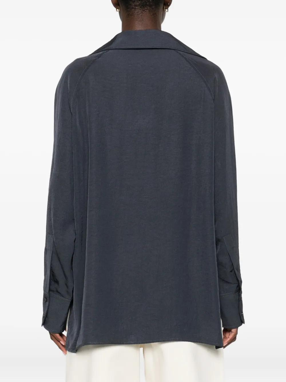 black cotton poplin texture classic collar front button fastening extra-long sleeves buttoned cuffs straight hem cropped
